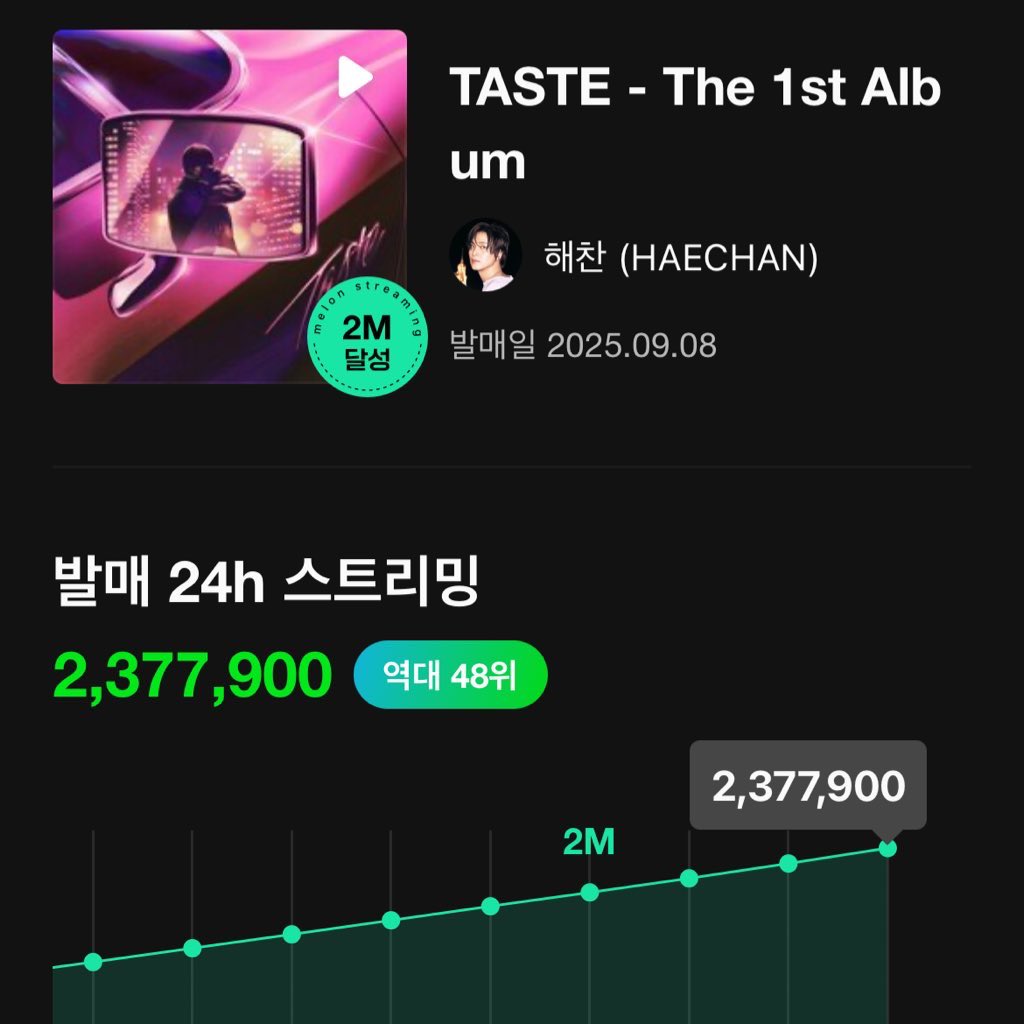 อัลบั้มเต็มชุดแรกของแฮชาน [TASTE] ทำสถิติยอดสตรีมสูงถึง 2,377,900 ครั้ง ภายใน 24 ชั่วโมงแรกหลังจากปล่อยเพลง 🥇