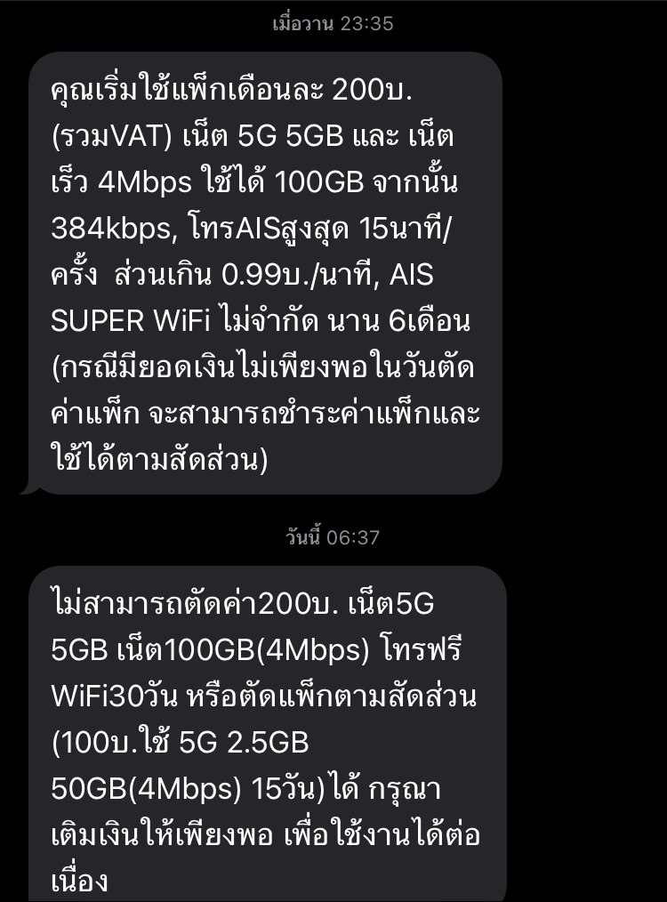 คือเรากะเติมเงินไว้150 ให้พอดีค่าเน็ต แล้วให้Aisหักค่าอินเตอร์เน็ตของเราไป แต่กลับไปหักของเรา กลับกินเงินไปเปล่าๆ เรางงมาก แล้วเติมมาให้เราแค่75บาท คืออะไรตะแบบนี้ เราไม่โอเคเลย อุตส่าห์เติมไว้กะให้หั