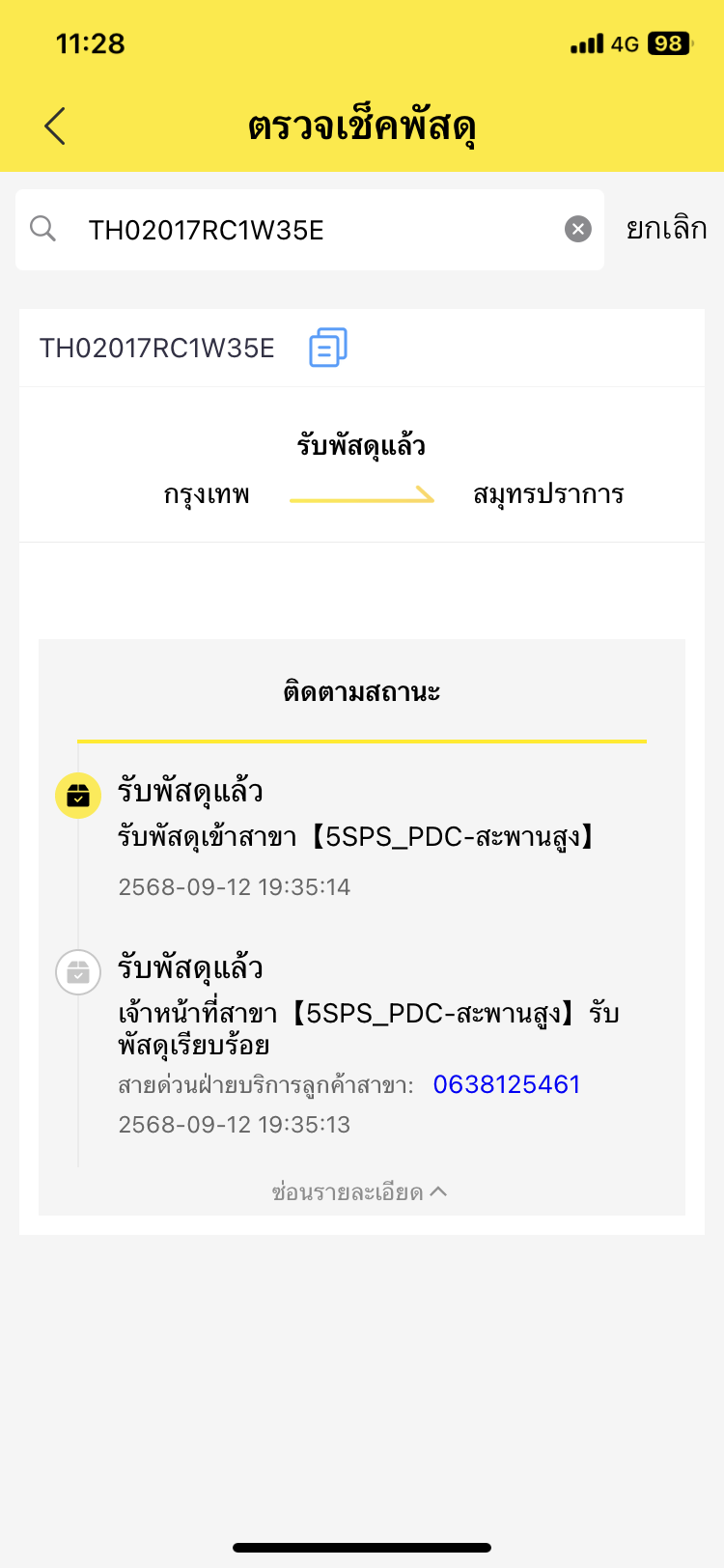 พอดีต้องใช้ของในวันพรุ่งนี้ เเต่พัสดุยังขึ้นอยู่ที่เดิม แบบนี้เราสามารถไปรับของเองที่สถานีปลายทางได้มั้ยคะ เพราะจากสถานีปลายทางที่ส่งแค่สะพานสูงมาสมุทรปราการ ตอนสั่งสั่งตั้งเเต่วันที่10 คนส่งส่งของให้ตั้งเเต่วันที่11 แต่สถานะรับพัสดุเมื่อวานนี้ตอนทุ่มกว่าๆโทรติดต่อเบอร์บริการลูกค้าก็ไม่มีใครรับ ตอนเเรกนึกว่าจะถึงวันนี้สรุป ยังอยู่ที่เดิม เลยอยากทราบว่าสามารถไปรับเองที่สถานีปลายทางได้มั้ย?