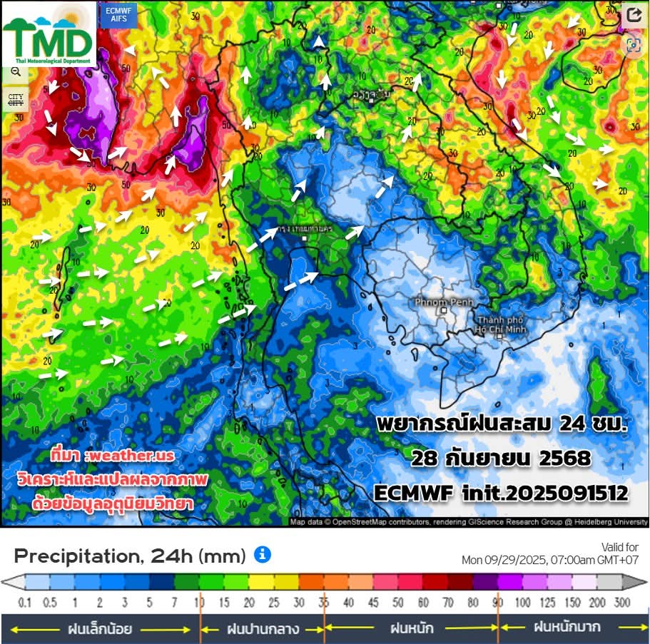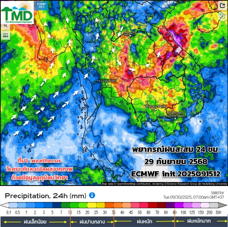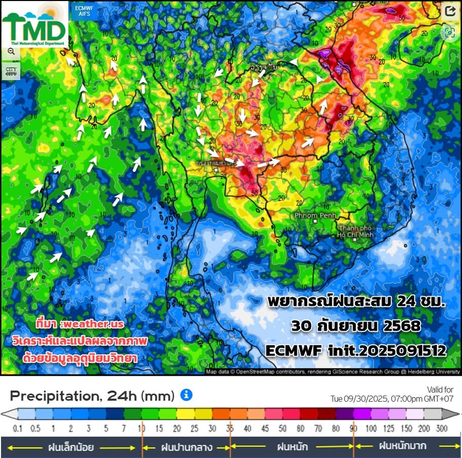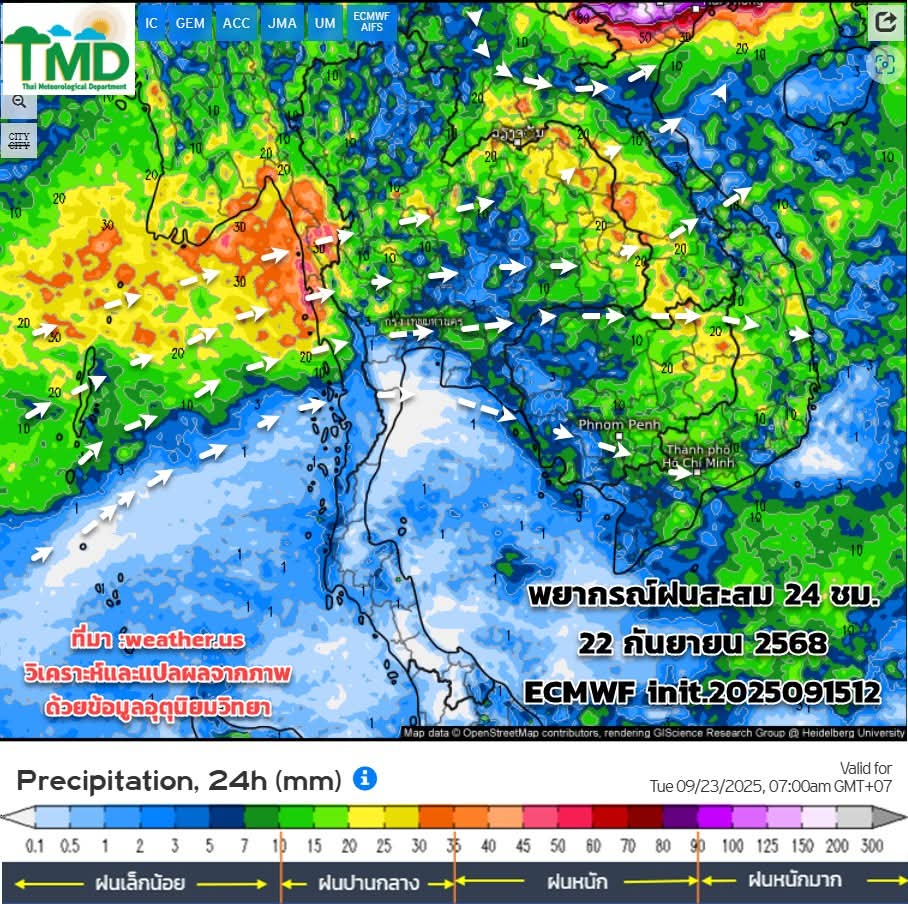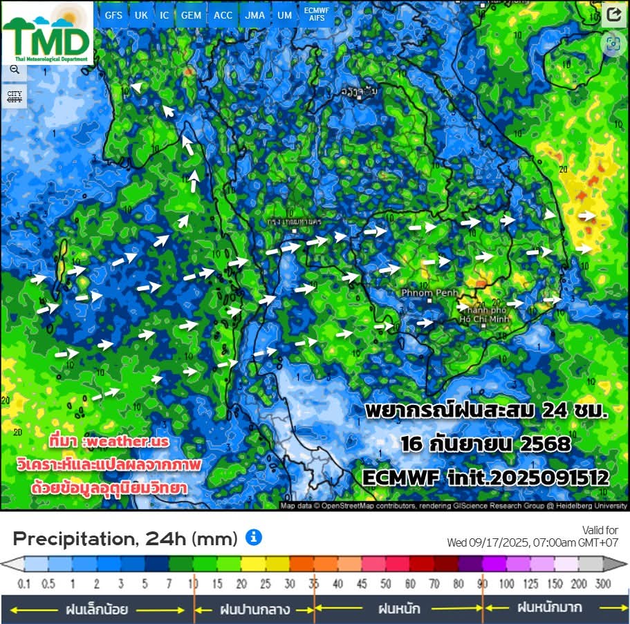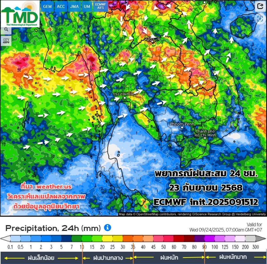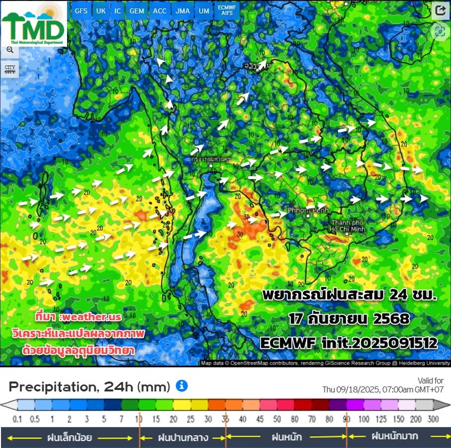 พยากรณ์ฝนสะสมรายวัน 16-30 กันยายน