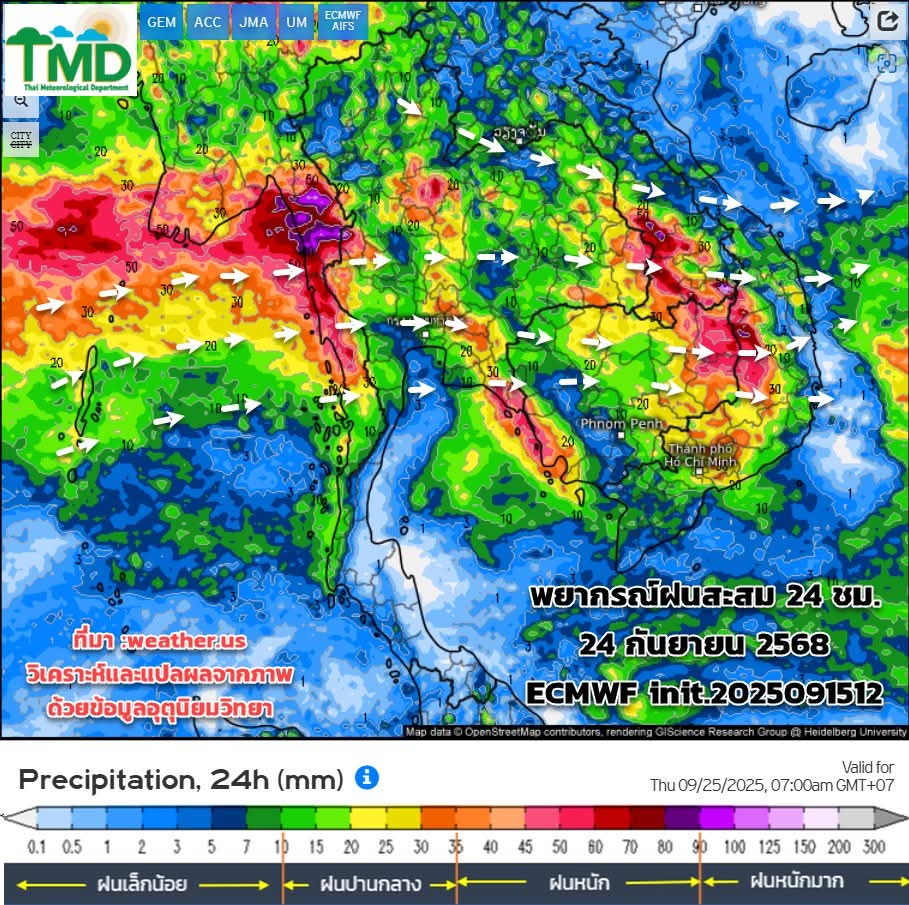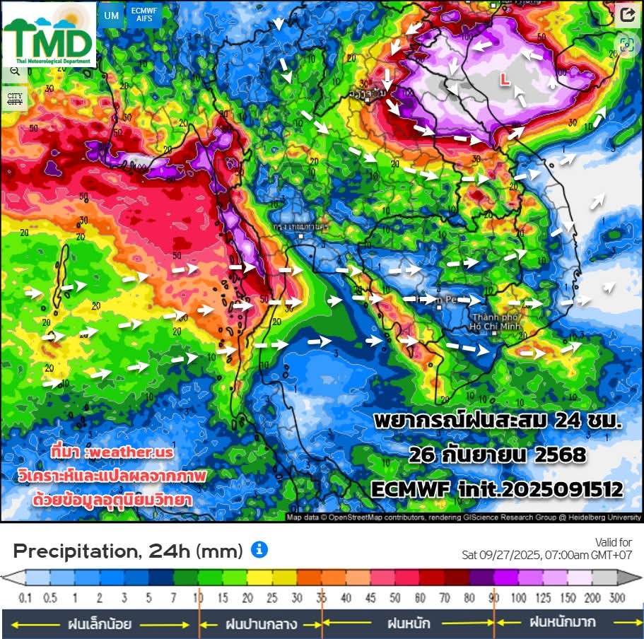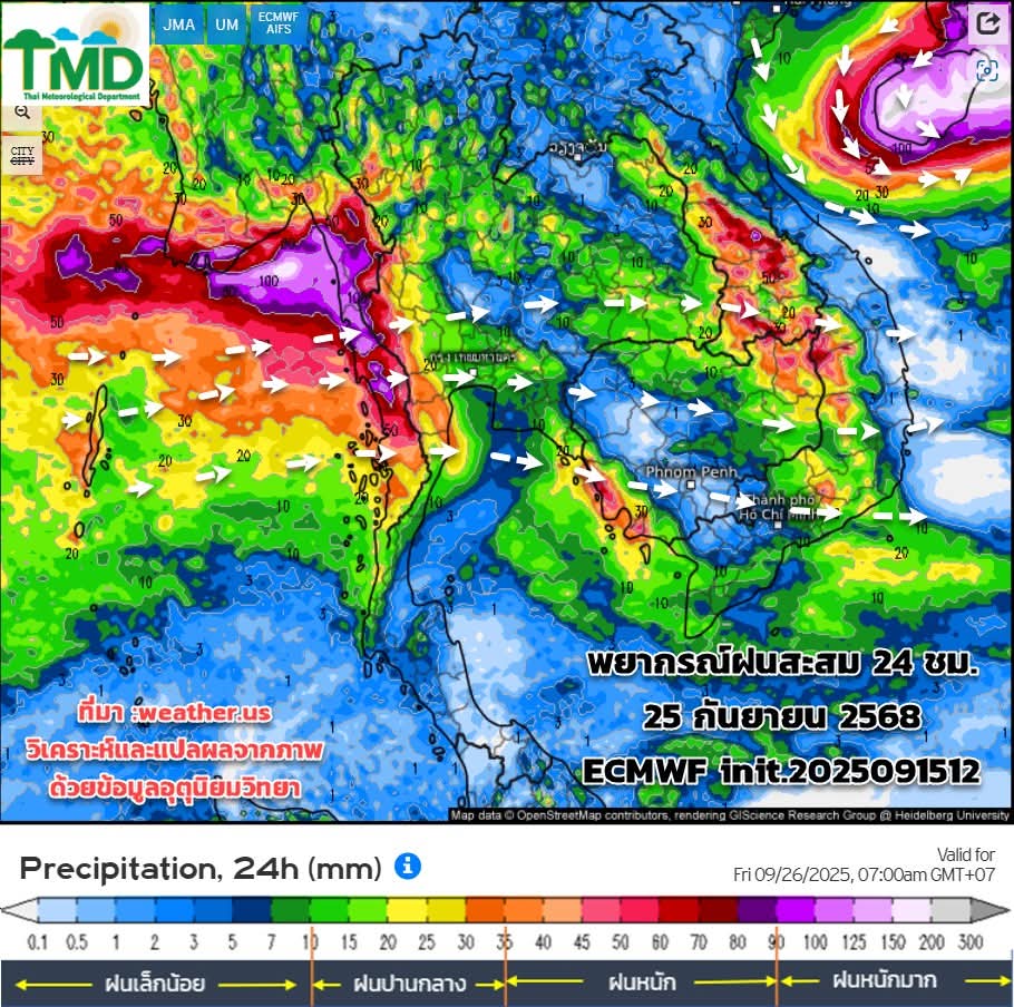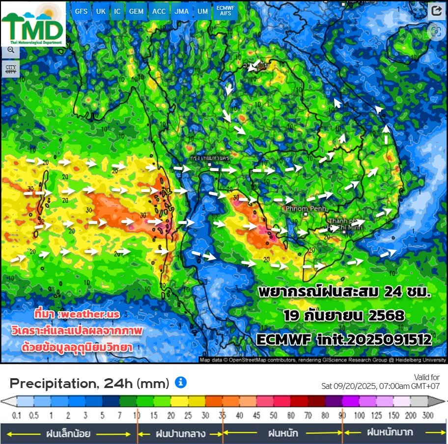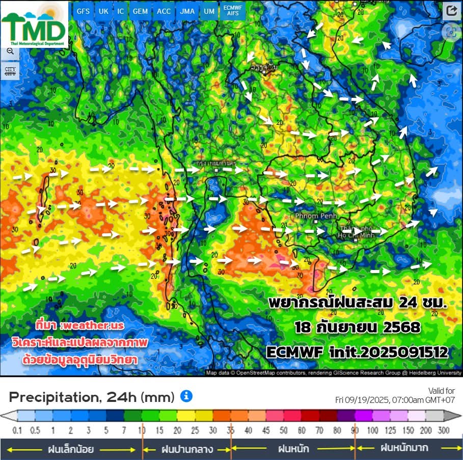 ช่วง17- 30 ก.ย.68 ทั่วไทยมีฝนเพิ่มขึ้น เนื่องจากมรสุมมีกำลังแรงขึ้น ร่องยังคงพาดผ่าน ประกอบกับจะมีหย่อมความกดอากาศต่ำปกคลุม ภาคอีสาน ภาคกลาง ทำให้มีฝนตกหนักหลายพื้นที่ โดยเฉพาะช่วง 22-25 ก.ย.68 ต้องเฝ้าระวังฝนตกหนัก ฝนตกสะสม ช่วงปลายเดือน (26-27 ก.ย.68) มีสัญญาณของพายุที่จะเคลื่อนตัวเข้าสู่ประเทศไทย แต่ข้อมูลยังเห็นไม่สอดคล้องกันในขณะนี้ ให้ติดตามข้อมูลจากกรมอุตุนิยมวิทยาเป็นระยะๆ อย่าพึ่งตื่นตระหนกกับข้อมูลข่าวสารที่เผยแพร่บนโซเซียลในขณะนี้ ต้องวิเคราะห์สภาพแวดล้อมอื่นๆเพิ่มเติม (ข้อมูลนี้ยังมีการเปลี่ยนแปลง ใช้เป็นแนวทางการติดตามและวางแผนการรับมือในช่วงฤดูฝน)