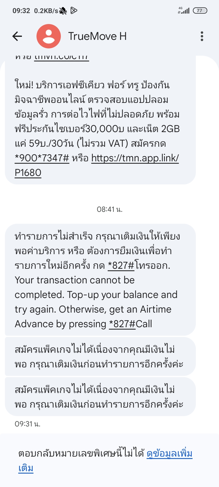 อีกแล้ว อยู่ดีๆ Truemove H ก็มาสมัครรับ SMS สแปมให้เอง
