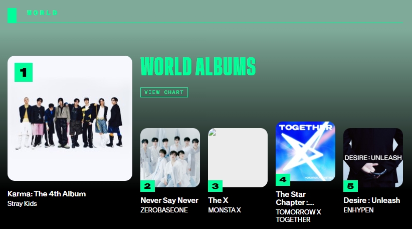 🔥 Stray Kids “KARMA” ชาร์ต Billboard World Albums อันดับ 1 เป็นเวลาสามสัปดาห์แล้ว! K-pop มากสุด 4 อัลบั้มครองชาร์ตนี้