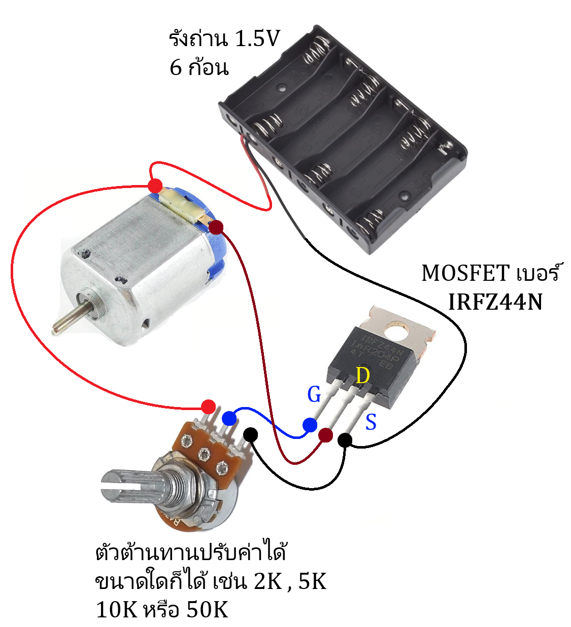 ถ้าต้องการปรับความเร็วการหมุนของมอเตอร์ควรจะใช้อุปกรณ์อีก 1 ตัวก็คือ MOSFET เบอร์ IRFZ44N .... และต่อวงจรตามภาพนี้ครับ