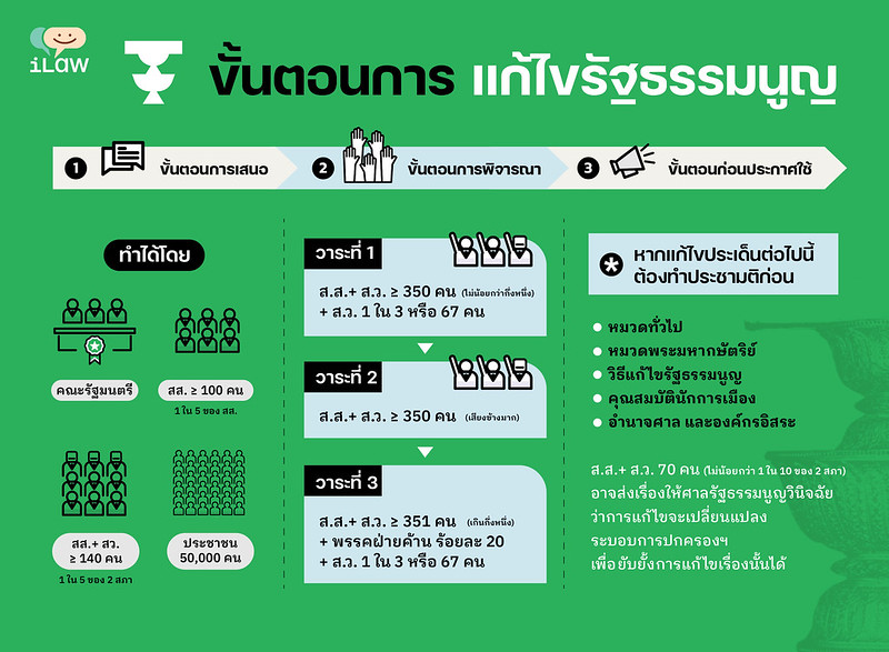 อย่างไรก็ดีในประเด็นการแก้ไขเพิ่มเติมรัฐธรรมนูญนี้ มีข้อสังเกตที่น่าสนใจ คือ ทั้งพรรคเพื่อไทย และพรรคประชาชน ยอมที่จะมองข้าม “เงื่อนไข” ที่เคยกาหัวว่าเป็น ปัญหาและอุปสรรคต่อการแก้ไขเพิ่มเติมรัฐธรรมนูญมาตลอด คือ การได้รับความยินยอม และเห็นชอบด้วย จาก “สว.” ตามมาตรา 256 กำหนดให้ได้เสียงสว.สนับสนุน จำนวนไม่น้อยกว่า 1 ใน 3 ของ สว.ที่มีอยู่ หรือ 67 เสียง