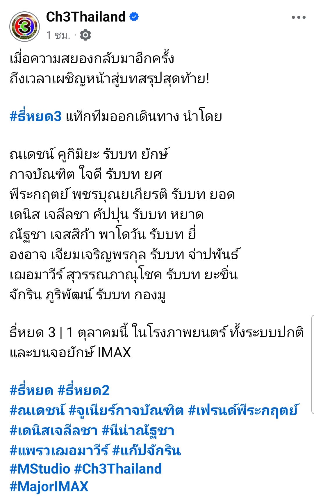 🔊 เมื่อความสยองกลับมาอีกครั้ง ถึงเวลาเผชิญหน้าสู่บทสรุปสุดท้าย! #ธี่หยด3 แท็กทีมออกเดินทาง นำโดย ณเดชน์ คูกิมิยะ