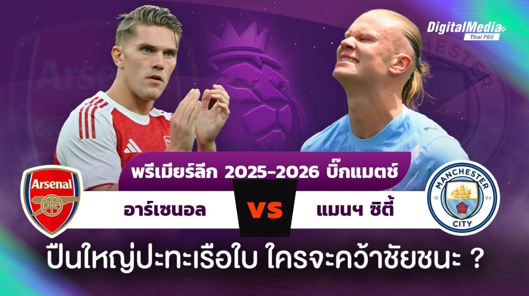 ดูบอลพรีเมียร์ลีกอังกฤษ สุดสัปดาห์นี้ วันอาทิตย์ที่ 21 กันยายน 2568 สองทีมใหญ่โคจรมาพบกัน อาร์เซนอล - แมนฯ ซิตี้ เริ่มแข่งเวลา 22.30 น. Thai PBS นำสถิติ และเกร็ดที่น่าสนใจของทั้งสองทีม มาบอกกัน