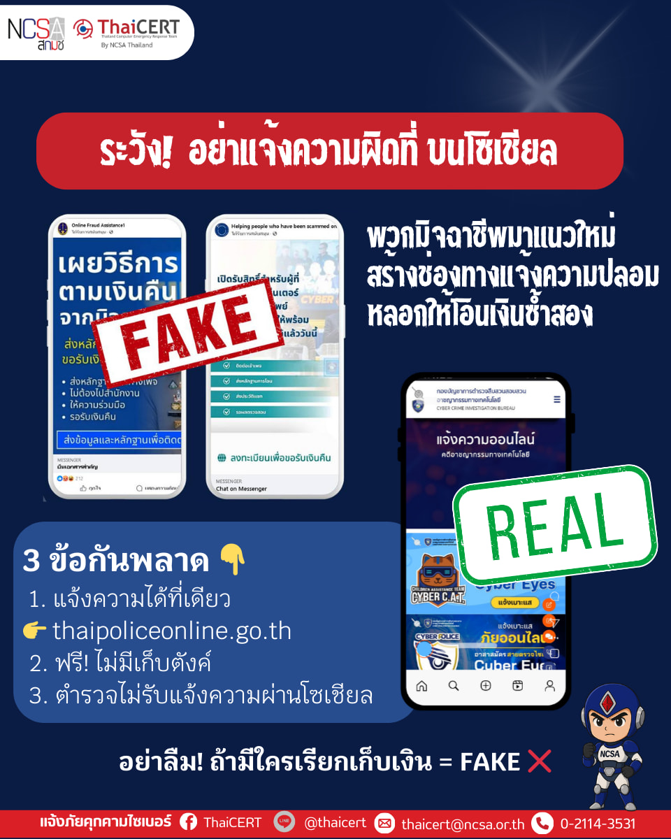 🚨 ด่วน! มิจฉาชีพหลอกให้แจ้งความออนไลน์ 🚨 อย่าหลงเชื่อโฆษณาปลอม ❌ แอบอ้างเป็น “ตำรวจไซเบอร์” หลอกให้โอนเงินซ้ำสอง