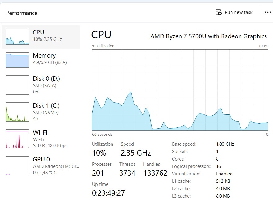 จากรูปนี้ เพิ่งเปิด Windows มา ยังไม่ได้เปิดอะไรอย่างอื่นเลย กิน Ram ไปแล้ว 83% ใช่ไหม อย่างนี้ควรเพิ่ม Ram จะแก้ปัญหาได้ไหม
