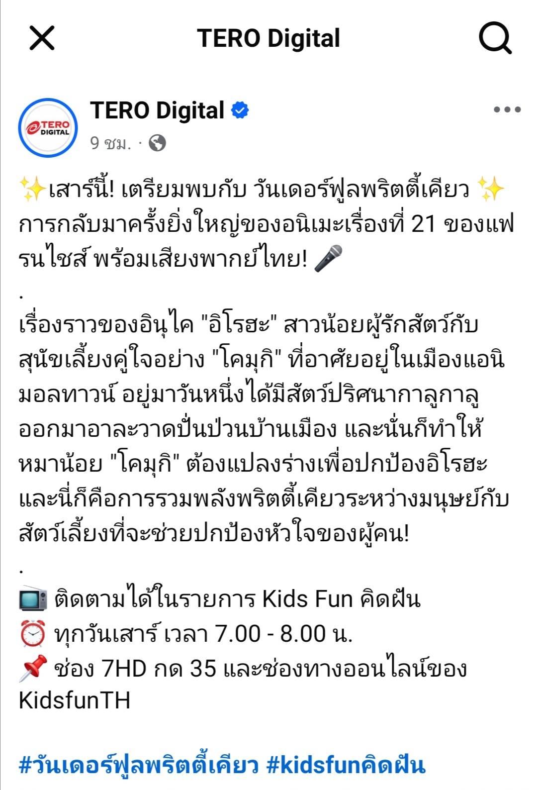 เรียกว่าไม่ได้ฉายพริตตี้เคียวในไทยมาหลายปีละและเป็นครั้งแรกที่ออกอากาศที่ช่อง 7HD ด้วย ซึ่งเพจ FB ของ tero digital ได้บอกว่า เสาร์นี้! เตรียมพบกับ วันเดอร์ฟูลพริตตี้เคียว การกลับมาครั้งยิ่งใหญ่ของอน
