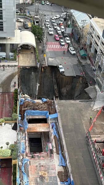 น่ากลัวมาก ด่วน! เวลา 07.13 น. เกิดเหตุถนนทรุดตัวเป็นหลุมขนาดยักษ์ ลึก 50 เมตร ที่บริเวณหน้าโรงพยาบาลวชิรพยาบาล