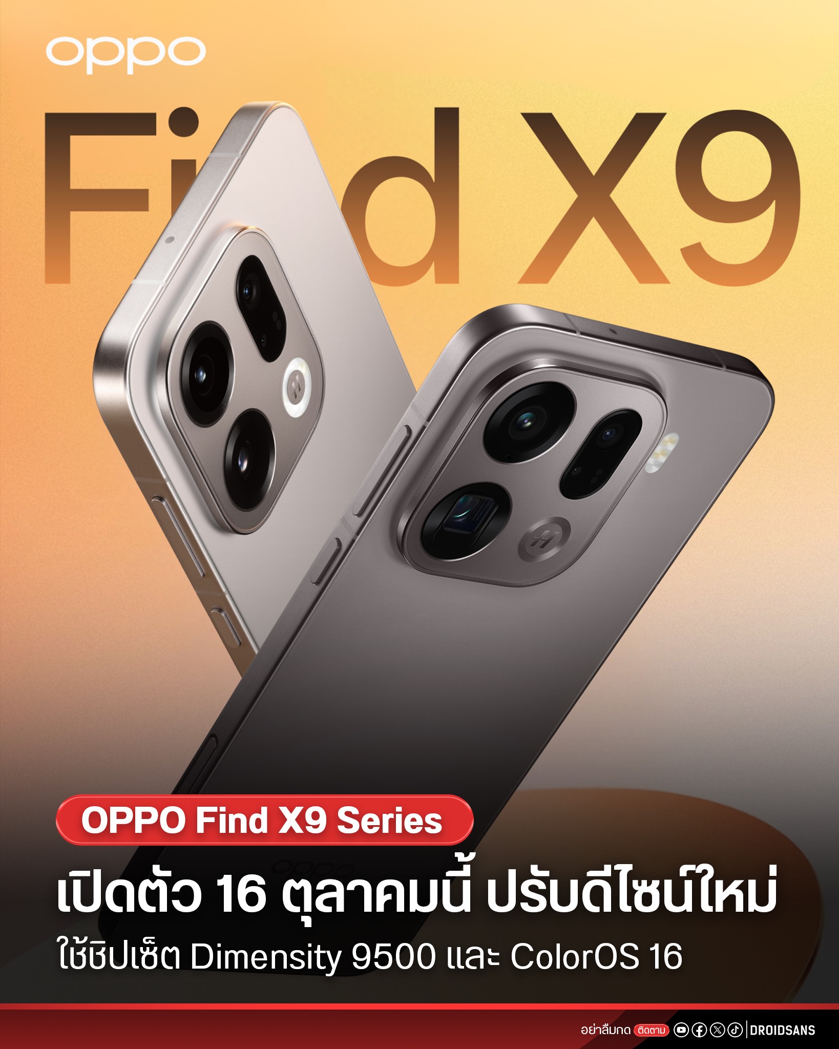 2..OPPO FIND X9 จะเห็นว่า ทรงmodule กล้องไม่เป็นทรงกลมแล้ว