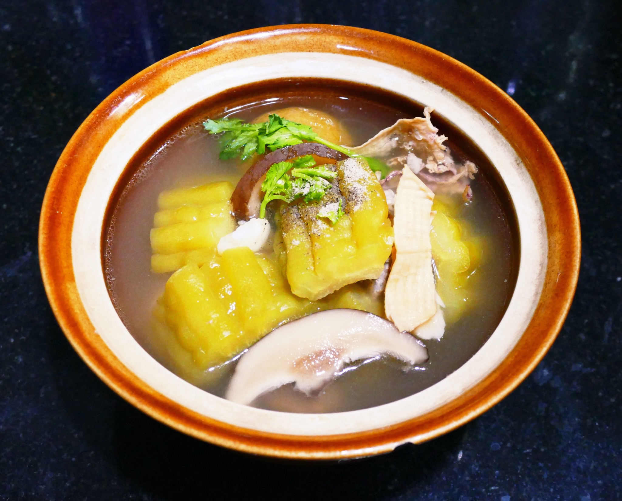 มื้อนี้ มาซดน้ำซุป ร้อนๆ แต่ซดแล้วสดชื่น เป็นต้มมะระ หรือ แกงจืดมะระ เห็ดหอม ที่ซดน้ำซุปแล้วสดชื่น