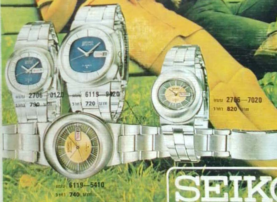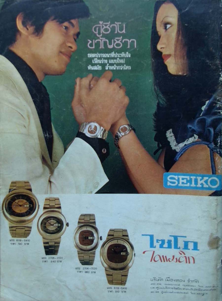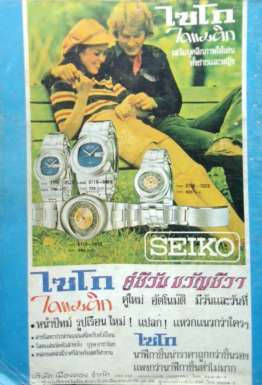 นาฬิกายี่ห้อไซโก้ ยี่ห้อดังในเมืองไทย ซึ่งมีหลากหลายรุ่น ราคาถูกสำหรับคนเบี้ยน้อยหอยน้อยก็มี แต่ที่โฆษณาในนิตยสารบีอาร์ ก็คงต้องเลือกระดับดีขึ้นมาสักหน่อยพอให้หนุ่มสังคมและสาวสังคมสนใจ ราคาจึงอยู่ที่ประมาณเรือนละ ๗๐๐ - ๘๐๐ บาท (๘๐๐ * ๒๒.๕ = ๑๘,๐๐๐)