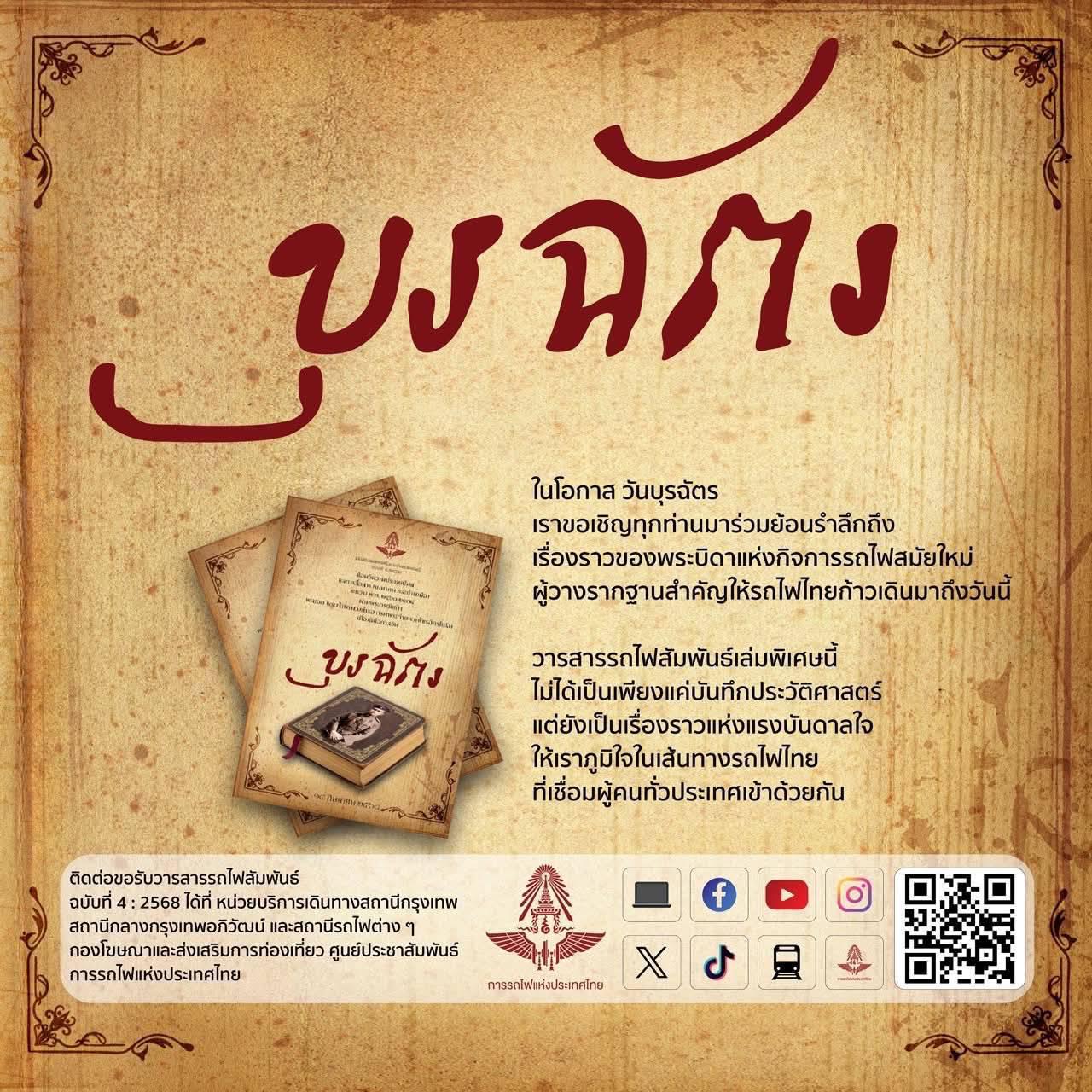 ติดต่อขอรับวารสารรถไฟสัมพันธ์ เล่มที่ 4/2568 ได้ที่...หน่วยบริการเดินทางสถานีกรุงเทพ สถานีกลางกรุงเทพอภิวัฒน์ และสถานีรถไฟทั่วประเทศ