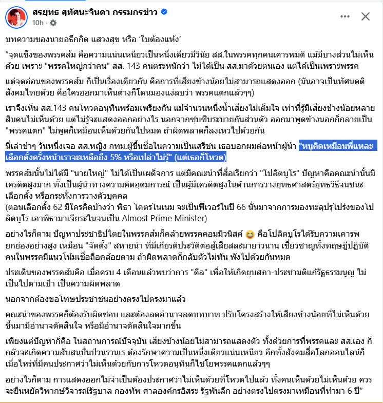 "หนูคิดเหมือนพี่แหละ เลือกตั้งครั้งหน้าเราจะเหลือถึง 5% หรือเปล่าไม่รู้" (แต่เธอก็โหวต)