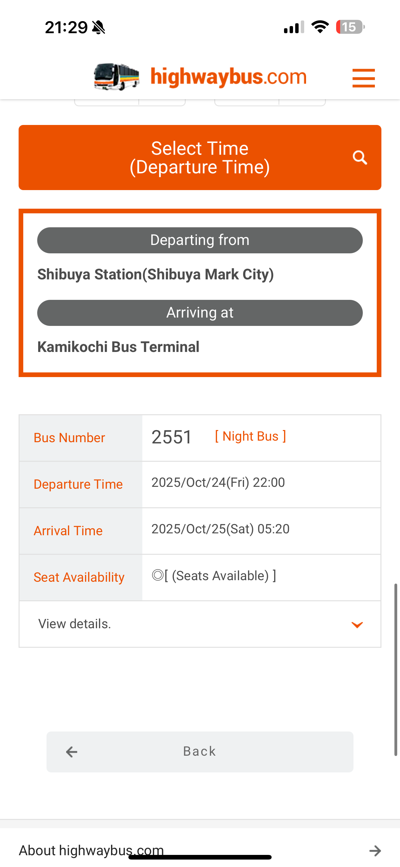 หรือนั่ง night bus ตรงจาก shibuya เวลา 22.00 ถึง kamikochi ตอนเช้า 05.20