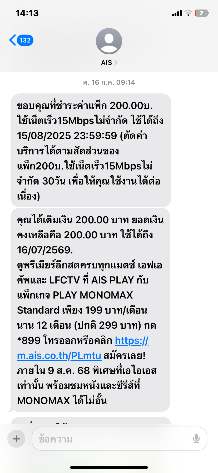 คือตอนที่ผมใช้เน็ตตามปกติก่อนเที่ยงคืนผมก็เติมเงินเอาไว้ 200 เพื่อให้หัก แต่พอผ่านเที่ยงคืนมา ดันไม่หกเงิน แล้วยังสมัครแพ็คให้อีก แพ็กเกจ เน็ตไม่จำกัด เร็ว 15 Mbps จำนวน 25GB หลังจากนั้นเร็ว 384Kbps 1