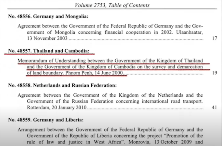 " MOU 43 กลายเป็นสนธิสัญญาไปแล้วตั้งแต่ปี 2011 เพราะมีคนขายชาติแอบไปจดทะเบียนขึ้นต่อ UN Charter ภายใต้มาตรา 102 ซึ่งเท่ากับยกเลิกไม่ได้ไปแล้ว 99% (เหลือให้ 1% เผื่อมีปาฏิหาริย์) "