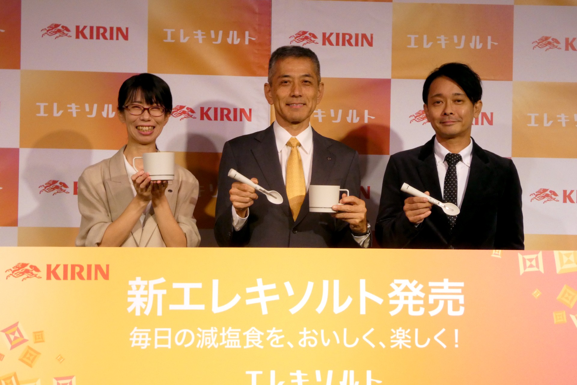 KIRIN เลยร่วมวิจัยกับมหาวิทยาลัยเมจิ ทำช้อนและถ้วยสร้างรสเค็มปลอมด้วยกระแสไฟฟ้าขึ้นมา เพื่ออยากให้คนญี่ปุ่นลดปริมาณการบริโภคโซเดียมลงนั่นเอง