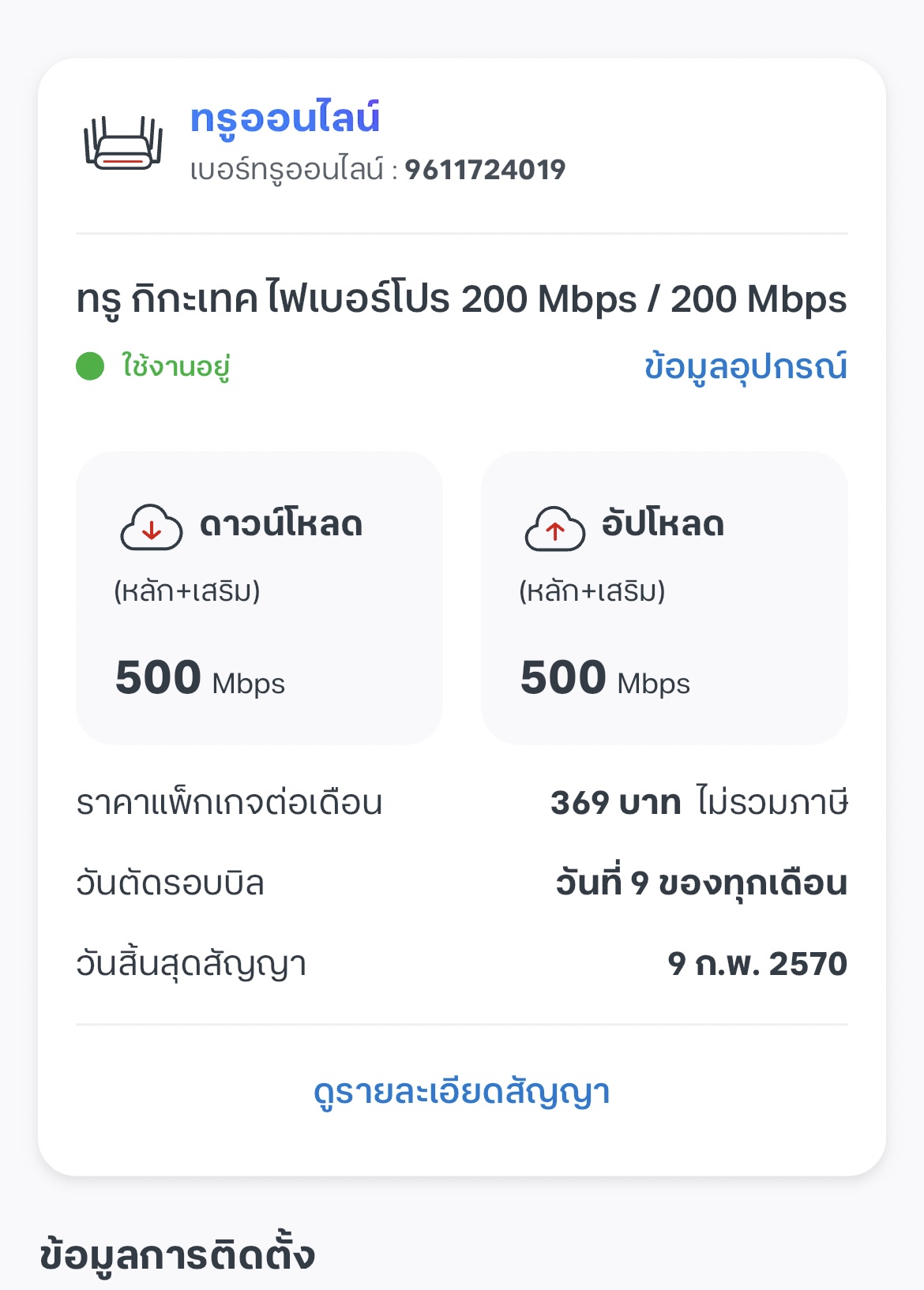 ขึ้นเก็บแพ็กเกจเสริมโดยที่เราแน่ใจว่าเรายังไม่ได้ตอบรับ เน็ตบ้านทรู