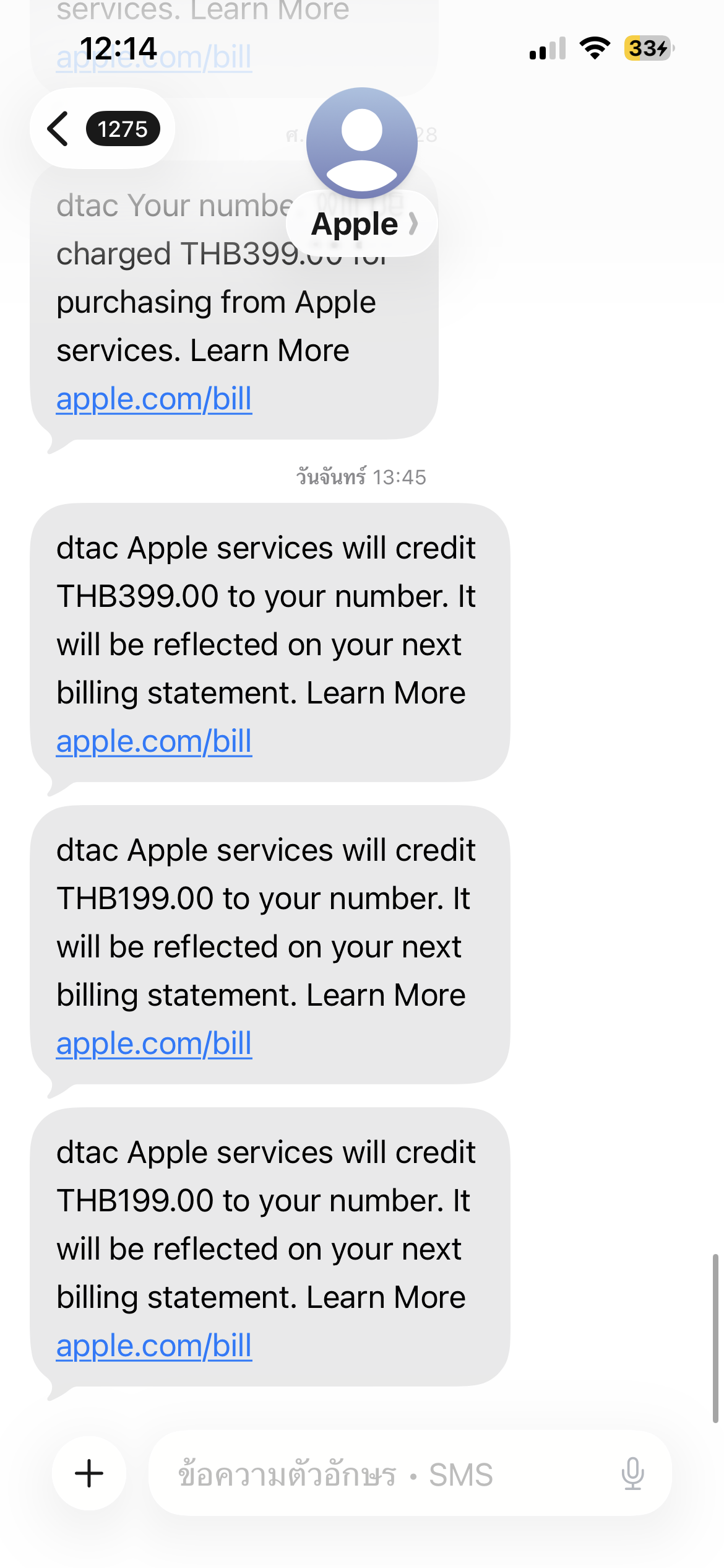 ขอ refund ใน Apple รอบบิลใหม่มาแล้วแต่เงินหายไปไหน เครือข่าย dtac
