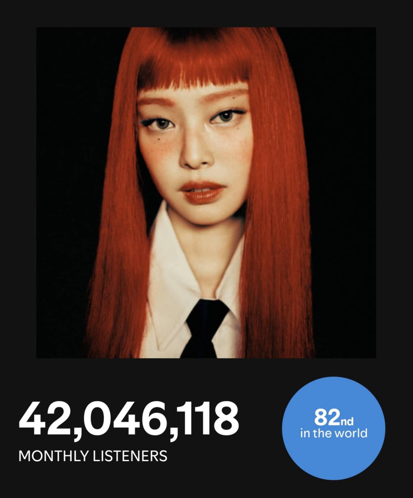 JENNIE กลับมามียอดผู้ฟังรายเดือนบน Spotify แตะ 42 ล้านคนอีกครั้ง ยังคงเป็นอันดับ #1 ของศิลปิน K-pop ที่มียอดผู้ฟังรายเดือนมากที่สุดในปัจจุบัน 🎉