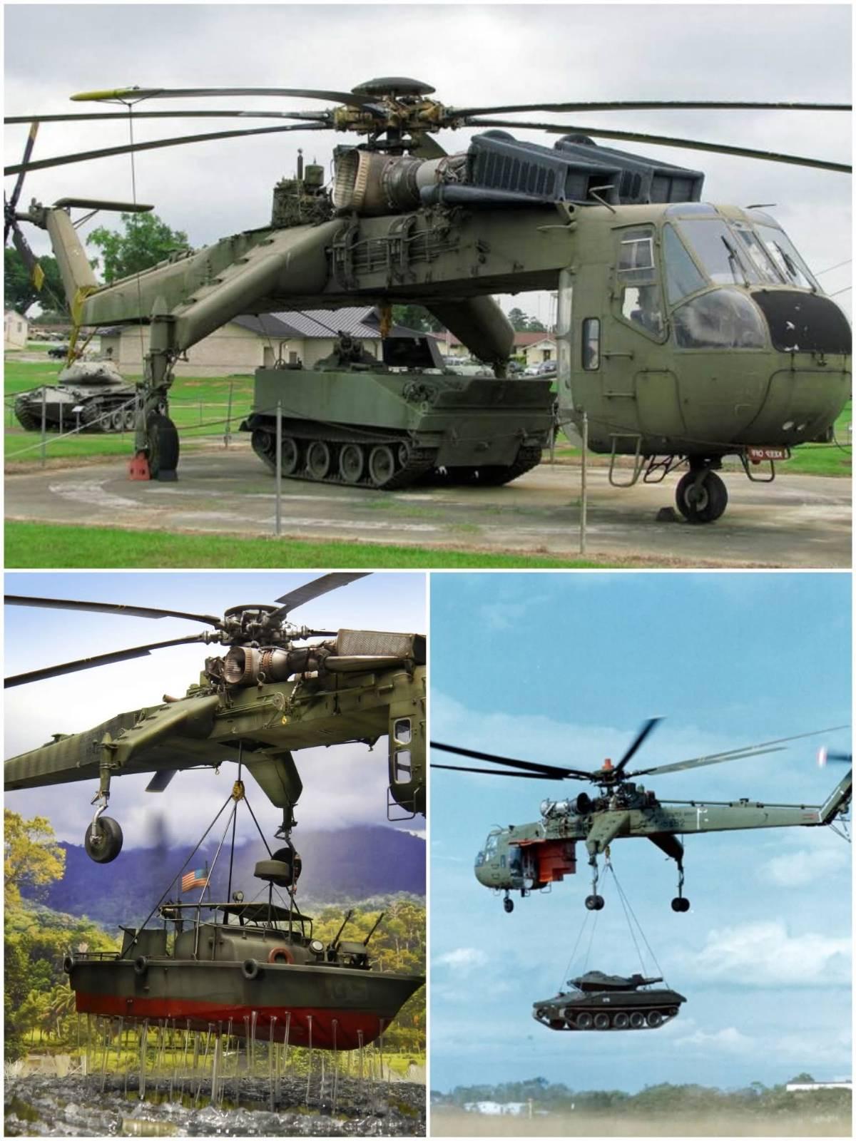 เฮลิคอปเตอร์หน้าตาแปลกๆ นี้ มีชื่อว่า "Sikorsky CH-54 Tarhe" หรือที่รู้จักกันในชื่อ "Sikorsky S-64 Skycrane" 🚁