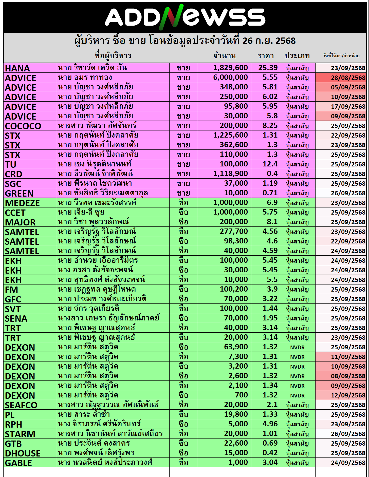 🔥🔥สรุปผู้บริหาร ซื้อ ขาย โอน