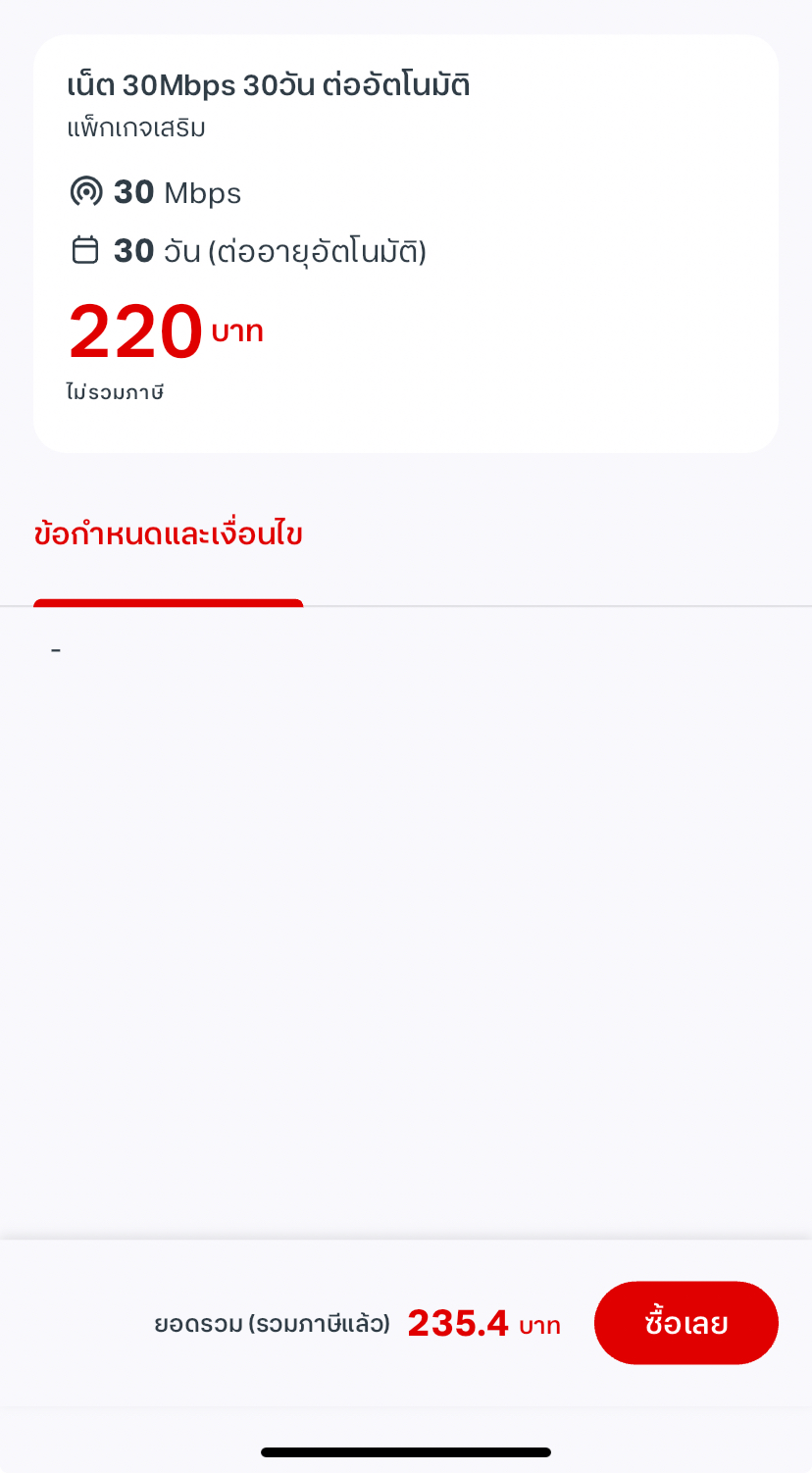ผมโดนแล้ว AIS เติมเงิน บังคับ เปลี่ยนแพคเกจ จาก 235 บาท 30Mbps เป็น 250 บาท 1Mbps หรือเลือก 280 บาท 10Mbps