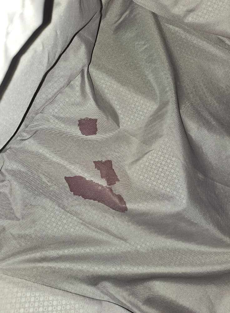 จุดที่เลอะตรงนี้ คือจุดที่เราวางเป้ใบใหญ่เอาไว้ ซึ่งในเป้มีแผ่นเหล็กอยู่ด้วยค่ะ