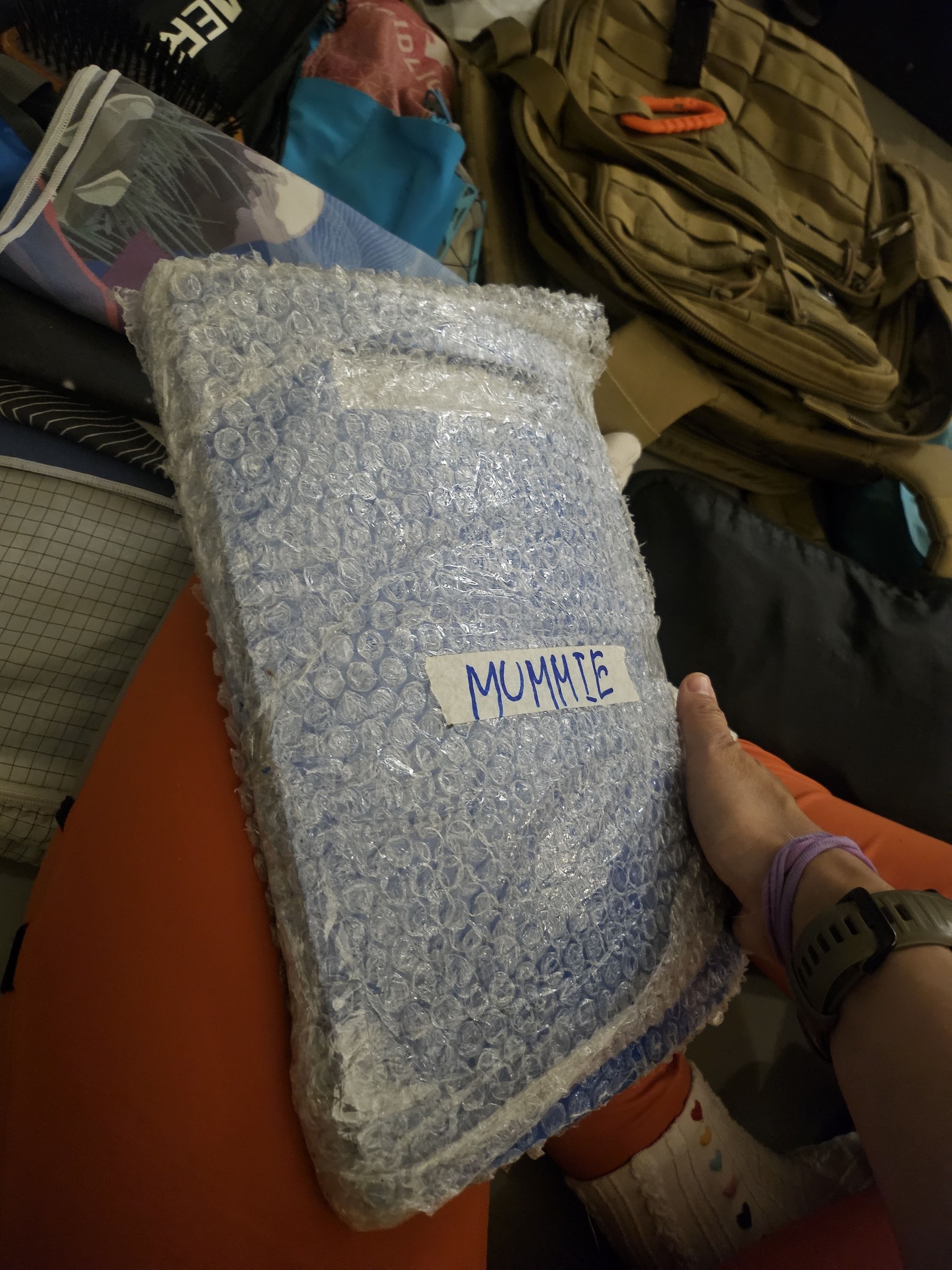 (แต่ก็จำลำดับการวางของไม่ได้ แต่เราวางของซ้อนๆ กันไว้เรียบร้อย มีการใส่ถุงผ้า ซองซิปแยกอย่างดี)
