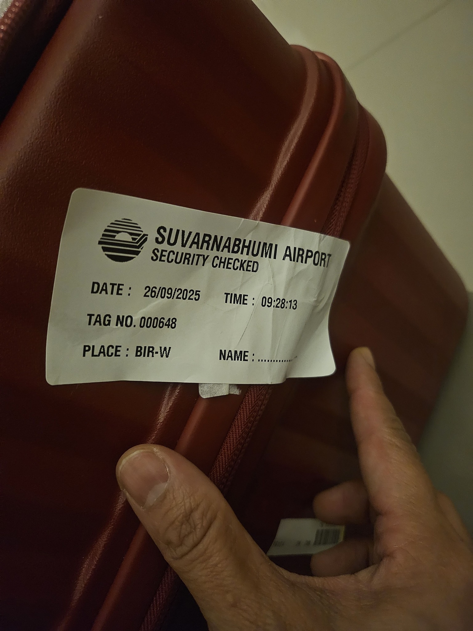 เรารู้ตัวว่า กระเป๋าถูกเปิด ตอนที่ ยกกระเป๋าขึ้นรถเช่า ก็เห็นว่า เอ๊ะ มีสติ๊กเกอร์อะไร ก็อ้อ กระเป๋าโดนเปิด (ไม่แปลกใจ)