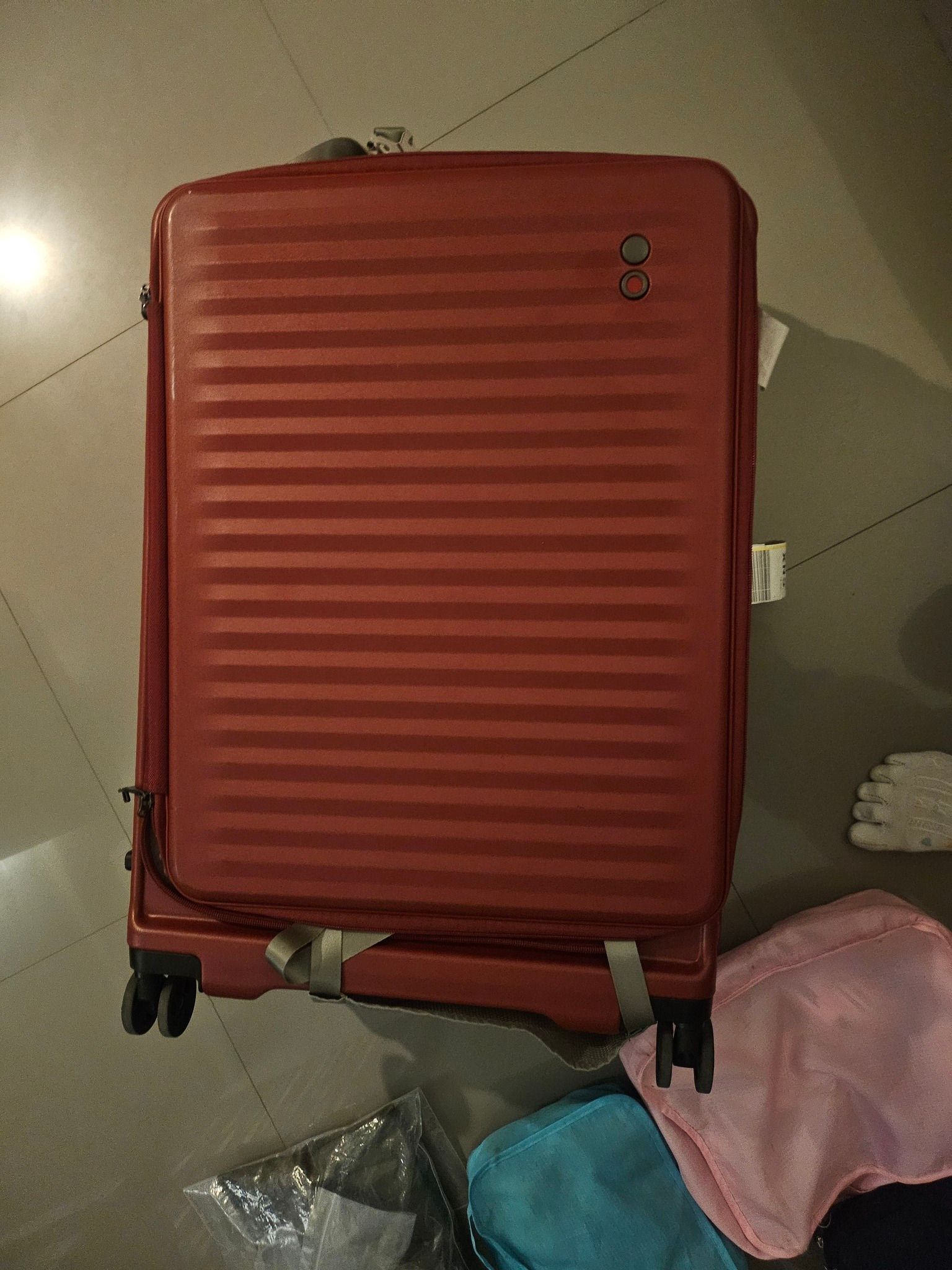 ตอนนั้น ก็เลย ปลดล็อคกระเป๋า แล้วเปิดดู โดยที่เพียงเปิดดูด้านบน ว่า ของยังวางเรียบร้อยอยู่นะ
