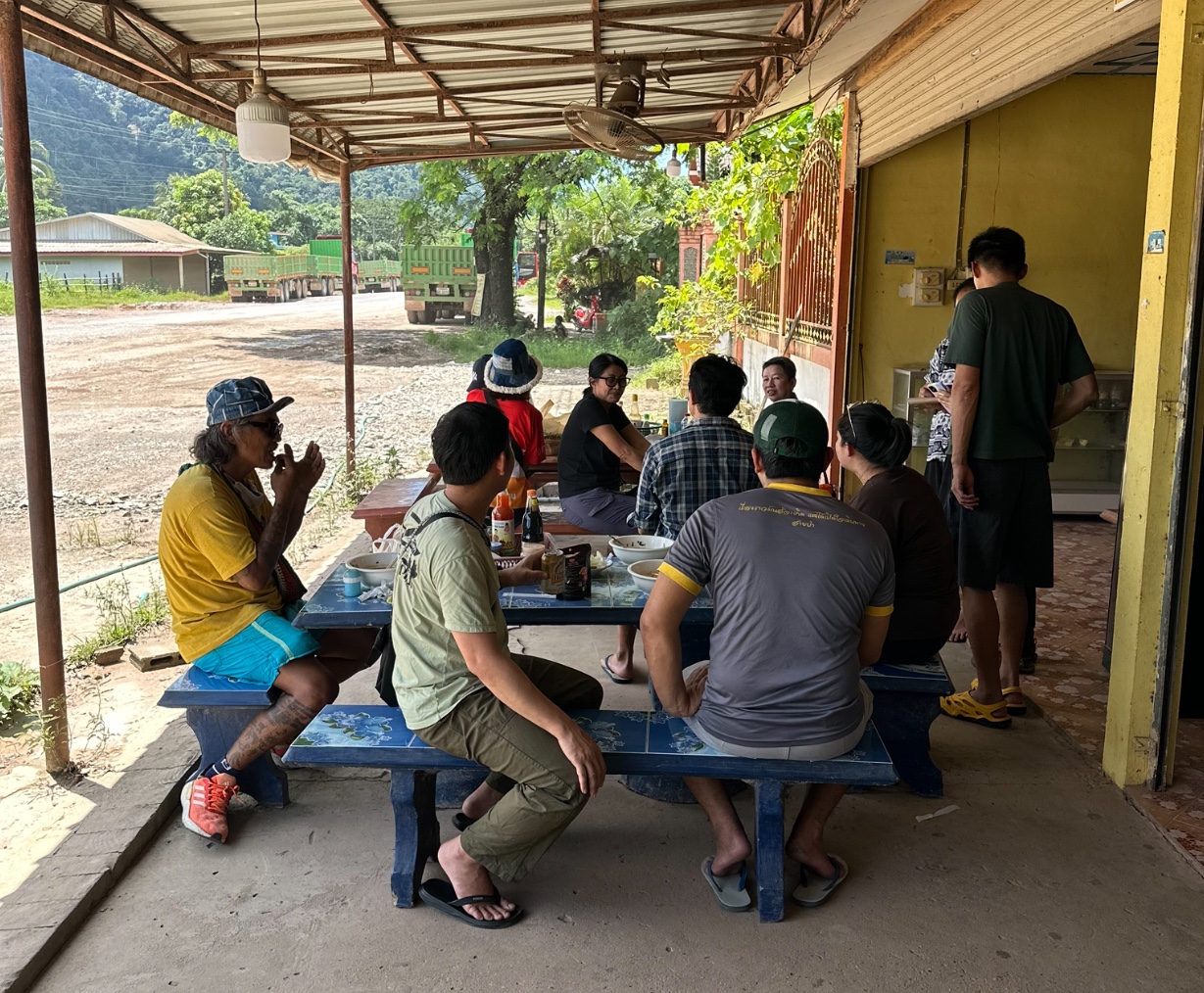 จากนั้นเดินทางไปยังด่านตม.นครพนม ลงจากรถเพื่อตรวจเช็ค passport จากฝั่งไทย ตรงจุดนี้มีห้องน้ำให้เข้าด้วยนะ แต่ไม่ค่อยสะอาดมากนัก ใช้เวลาตรวจหนังสือ 15-20 นาที เพราะไม่มีคนเลย แล้วก็ขึ้นรถตู้ข้ามสะพานมิตรภาพไทยลาวแห่งที่ 3 ยาวไปถึงด่านตรวจคนเข้าเมืองลาว ก็ต้องลงจากรถ ตรวจ passport ประทับตราเข้าแล้วก็เดินมาขึ้นรถตู้ ใช้เวลาตรวจ 15-20 นาที จากนั้นเราก็มุ่งหน้าสู่ The Rock Lodge ที่พักของเรานั่นเอง ระหว่างทางไปก็แวะเติมเสบียง ทานอาหารเที่ยงเป็นเฝอริมทาง คนละชามก่อนเข้าที่พัก เส้นทางถนนช่วงแรกก็ดี แต่ช่วงหลังนี่ถนนพังสุด ๆ กระเทือนคดเคี้ยวไปมา แถมมีแต่รถบรรทุกขนของที่เป็นตู้พ่วงคอนเทนเนอร์วิ่งตลอดเวลา เหมือนเป็นเส้นทางสายหลักของพวกเขา ใครขับมาเองต้องเชี่ยวชาญและมีสกิลขับขึ้นเขาเลี้ยวลดแบบถนนพัง ๆ และสกิลแซงรถพ่วงบนเนินเขาที่ดีนะฮะ