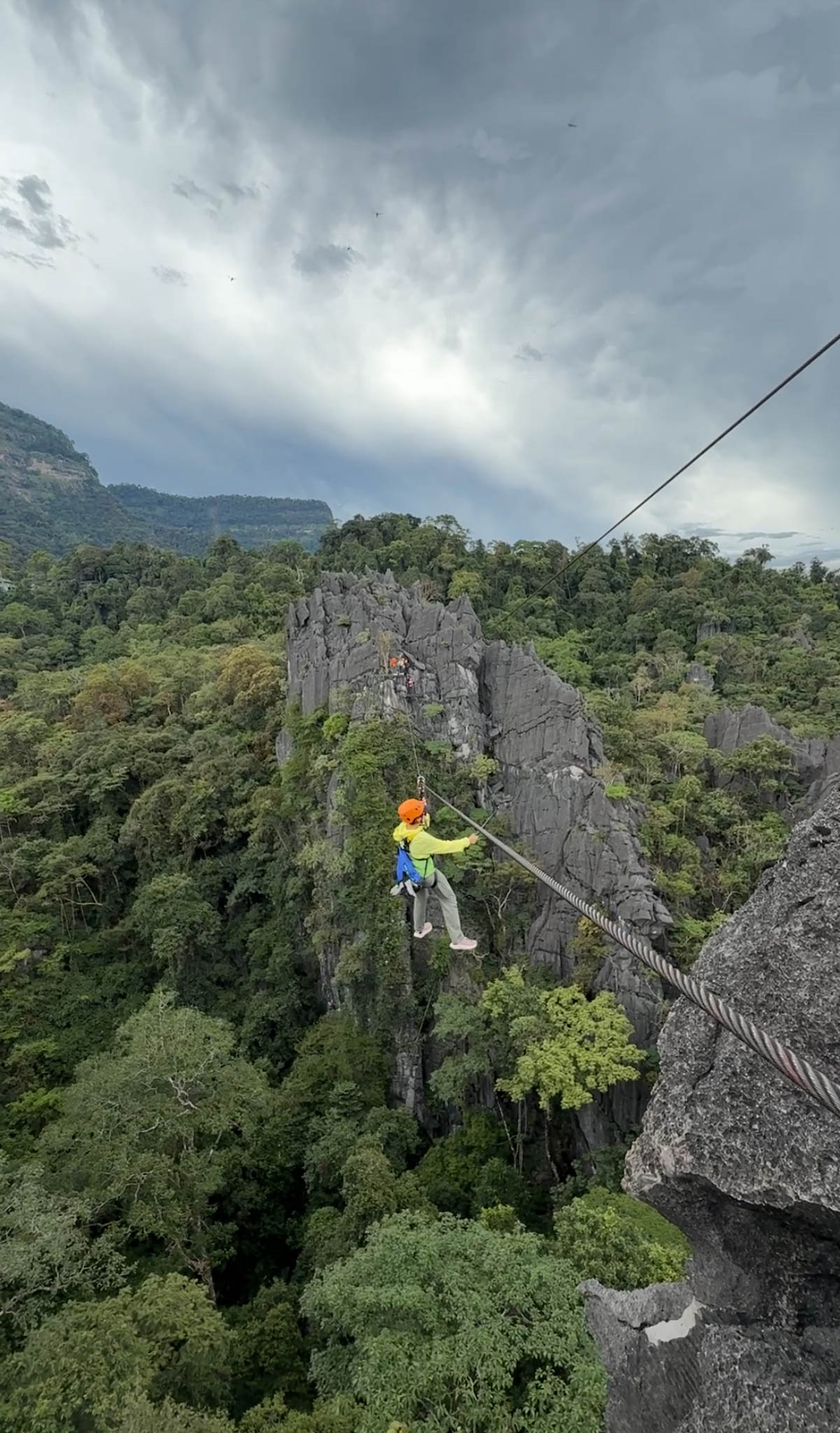 Package ที่เลือกเป็น pack ชื่อ Highlight of The Rock ใช้เวลา 2 ชม. เล่นได้ 5 เส้น ได้เดินบน Spider net ด้วย ใครอยากเล่น pack ใหญ่กว่านี้เข้าไปดูได้ที่เว็บGreen Discovery Laos จะมีแบบ Full day / Half Day พร้อมราคาแจ้งไว้
