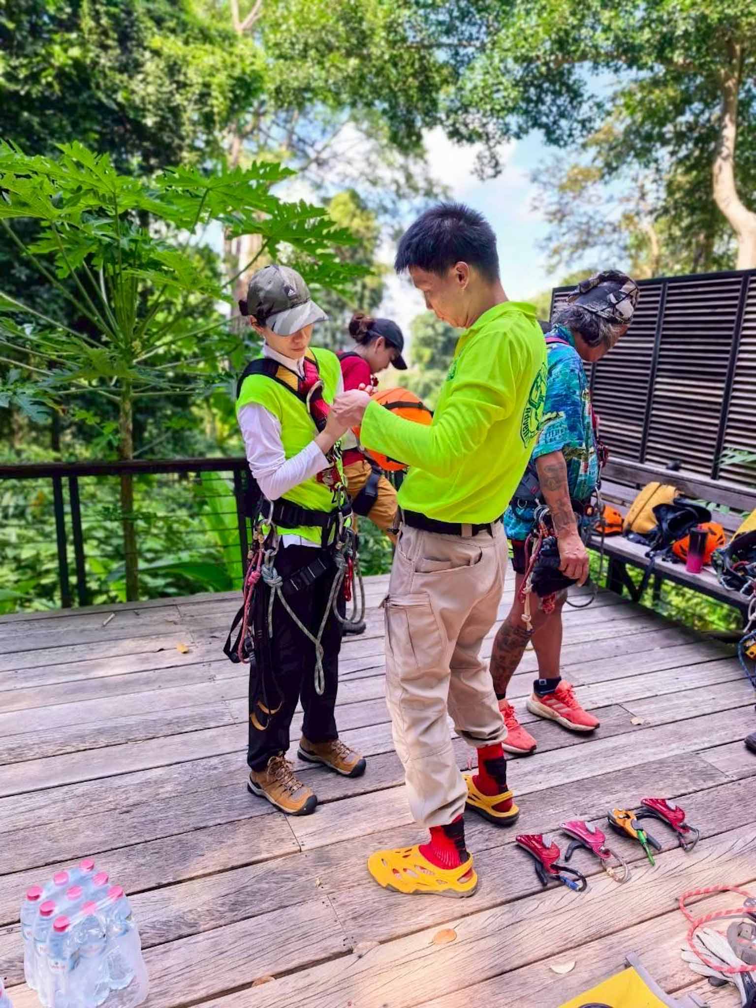 แล้วเราก็ไปแต่งตัวทรงเครื่องไปซิปไลน์กัน อ่อลืมบอกไปว่า ทริปนี้มากับเพื่อนสาวตัวเล็กตัวน้อยคนดีคนเดิม โอนไวใจ 5G คราวนี้ไม่ได้หลอกนะ แค่ทักเบา ๆ ว่าอยากลองชาเล้นจ์ตัวเองไหม นางก็ไม่ปฏิเสธ…เราไปที่หน้า Counter ทำการของ The Rock View Point ห่างจากที่พักไม่ไกลนักเดิน 10 นาทีจากห้องพัก จ่ายเงิน 30 $ เค้าคิดเรท 34บาท คิดเป็นเงิน 1020 แต่เค้าให้ส่วนลด สำหรับคนที่พัก 20% เหลือคนละ 816 เลยให้เงินไทยไป 820 กลม ๆ