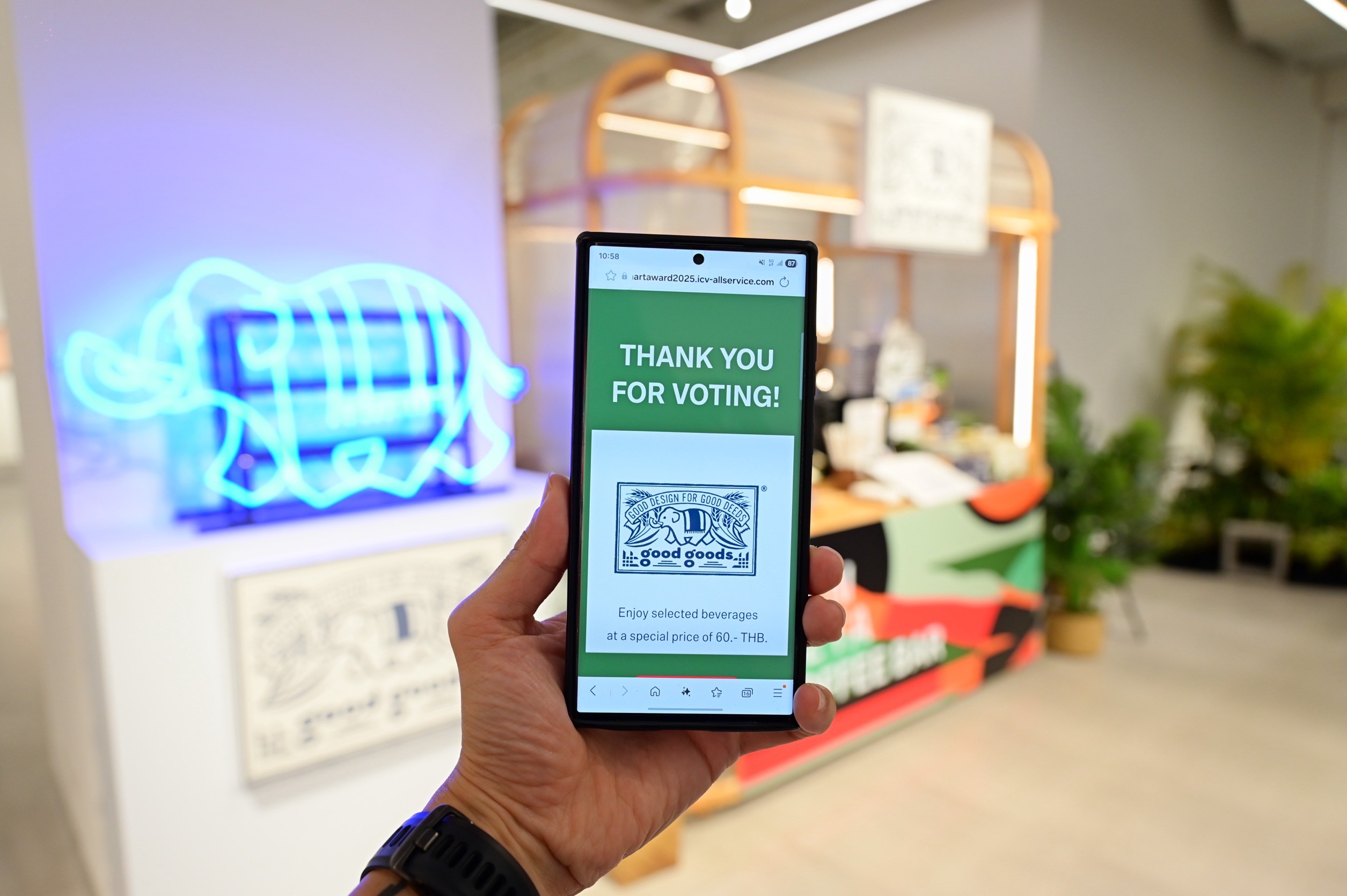 โดยสามารถร่วมโหวตผลงานศิลปะจากศิลปินเยาวชนไทย - ญี่ปุ่น ที่ผ่านเข้ารอบสุดท้ายผ่านการสแกนคิวอาร์โค้ดใต้ผลงาน ได้ท่านละ 1 ผลงาน พร้อมรับสิทธิพิเศษ ซื้อเครื่องดื่มจากร้าน Good Goods Cafe ในราคาพิเศษ!