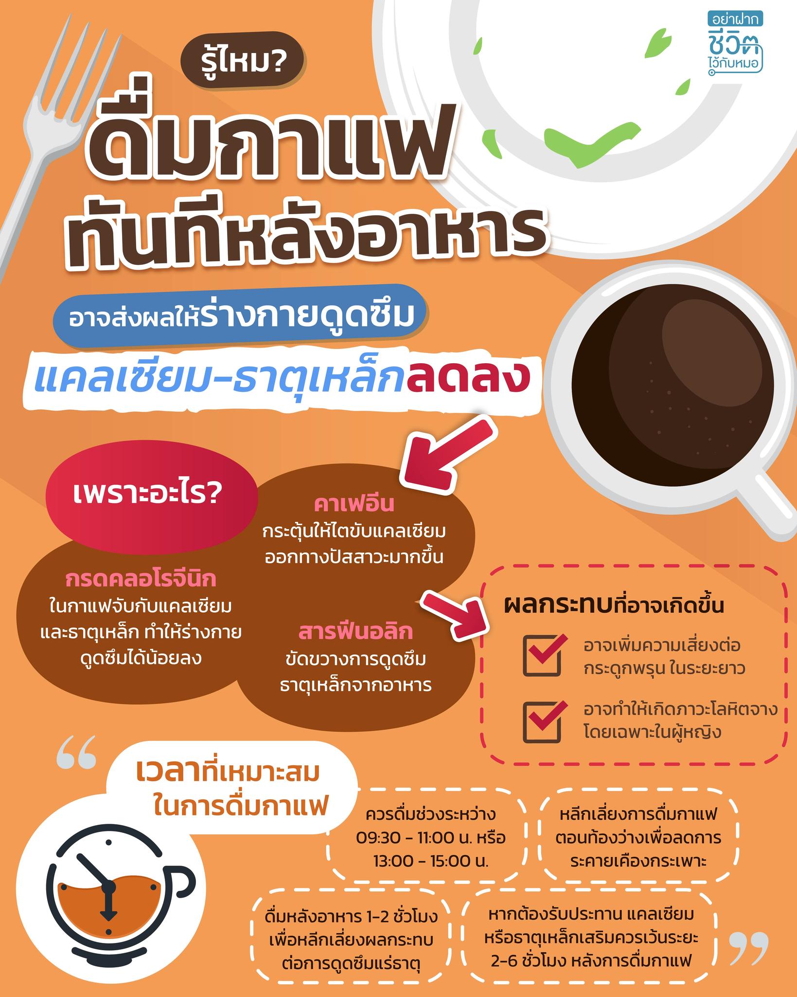 ☕ รู้ไหม? ดื่มกาแฟทันทีหลังอาหาร อาจส่งผลให้ร่างกายดูดซึมแคลเซียม-ธาตุเหล็กลดลง 🦷