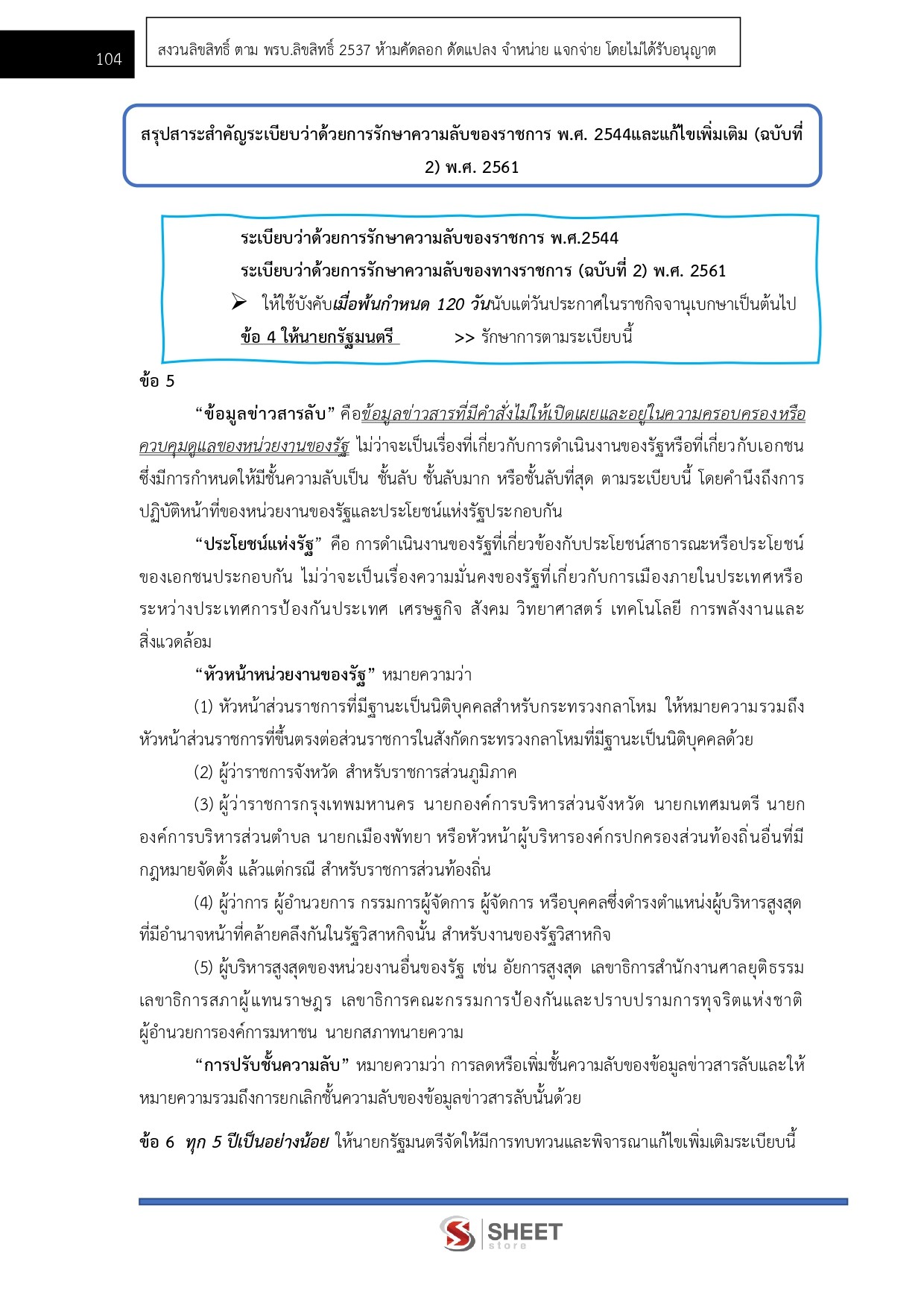 – แนวข้อสอบสรุประเบียบว่าด้วยการรักษาความลับของราชการ พ.ศ. 2544 และแก้ไขเพิ่มเติม (ฉบับที่ 2) พ.ศ. 2561
