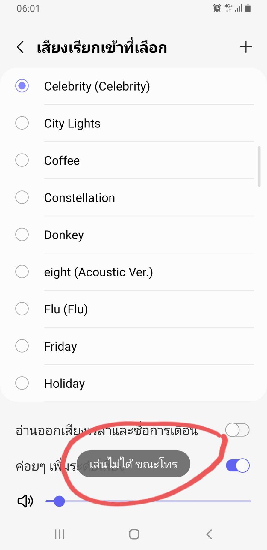 ทีนี้ลองเปลี่ยนเสียงเรียกเข้าก็เล่นไม่ได้ค่ะ