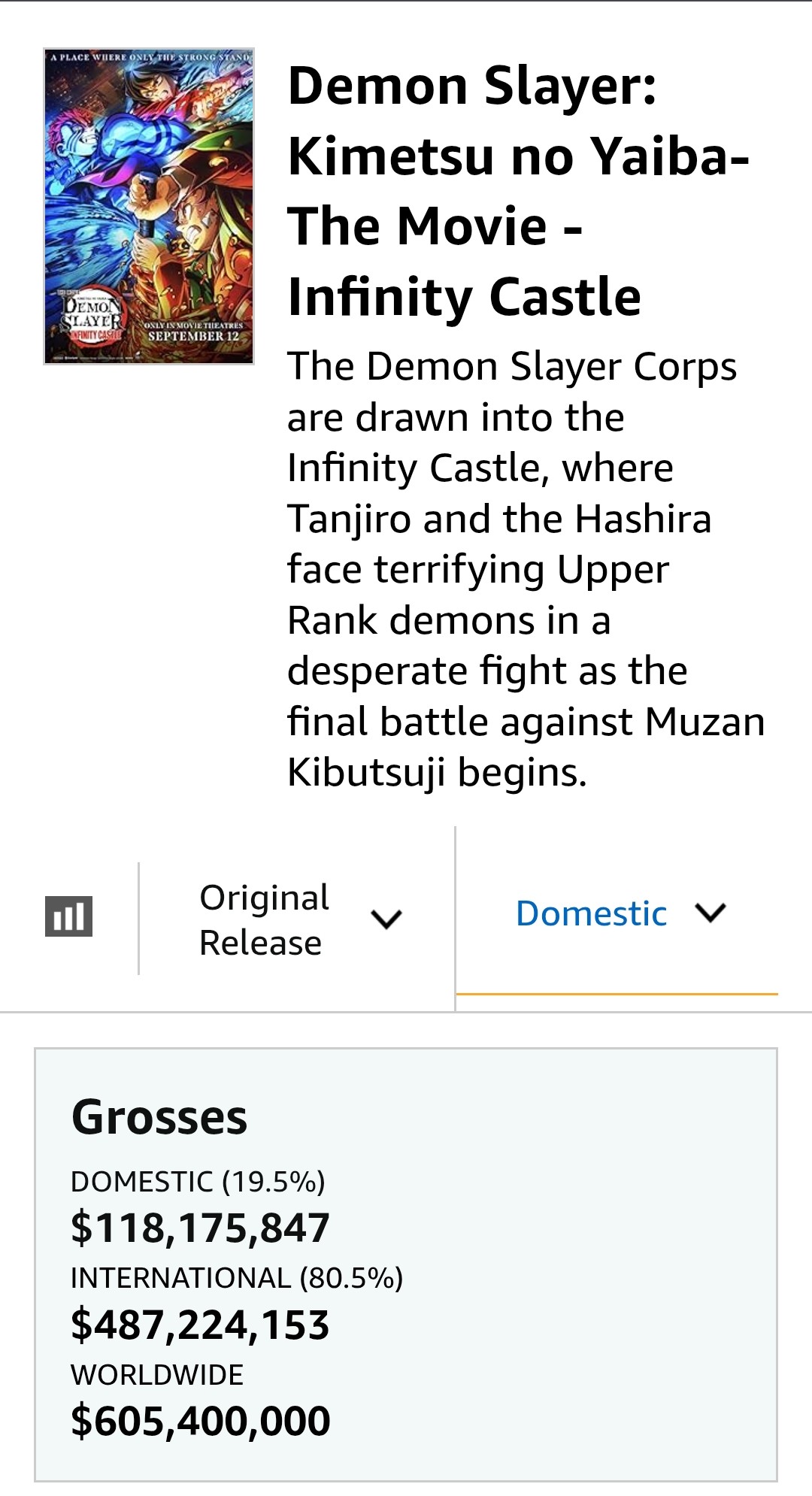 Demon Slayer: Kimetsu no Yaiba Infinity Castle Part 1 สามารถทำรายได้ทั่วโลกไปได้ถึง 605 ล้านดอลล่าร์แล้ว