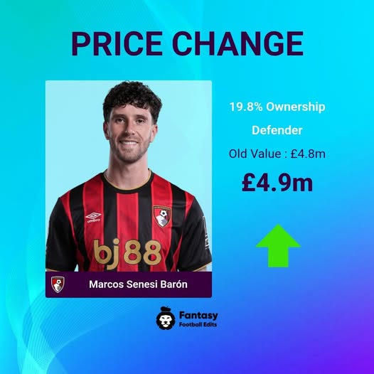 FPL (Fantasy Premier League) นักเตะราคาเปลี่ยนแปลง 29-9-68