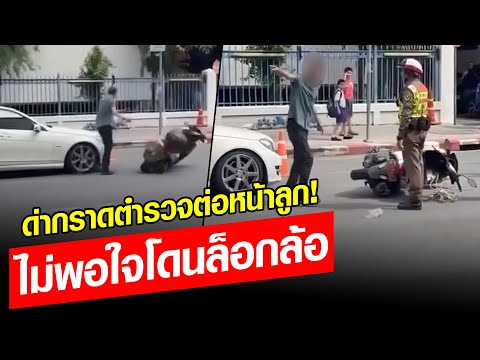 พ่อหัวร้อน จอดรถรับลูก หน้า ร.ร.ดัง ออกมาโดน ตร.ล็อกล้อ ไม่พอใจผลักรถล้ม ด่าแรง โต้เถียงอย่างดุเดือด โลกออนไลน์จี้ดำเนินคดีเคร่งครัด