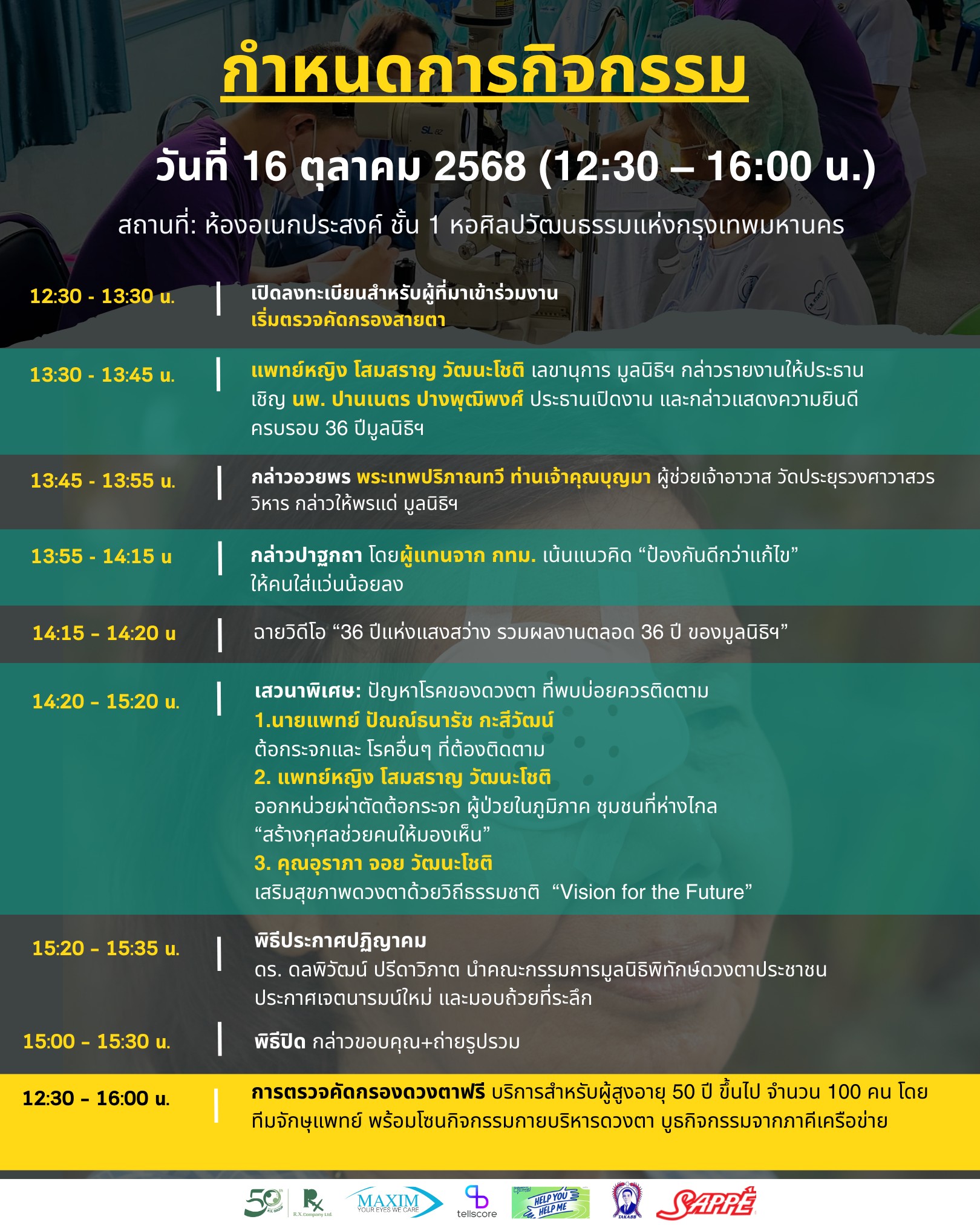 ขอเชิญร่วมงาน “36 ปีแห่งแสงสว่าง…ช่วยคนให้มองเห็น” ตรวจตาฟรีผู้สูงอายุ