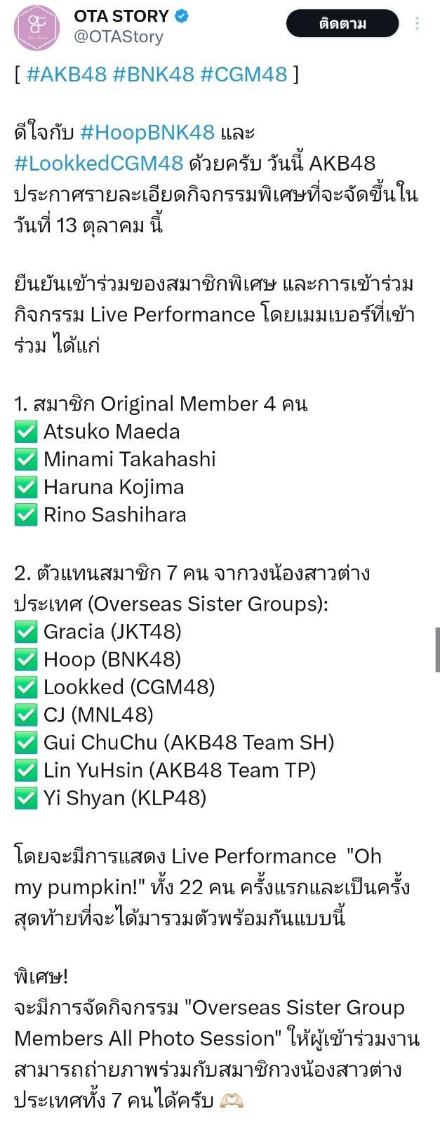 ขอบคุณที่มาจาก AKB48 และเพจ OTA Story