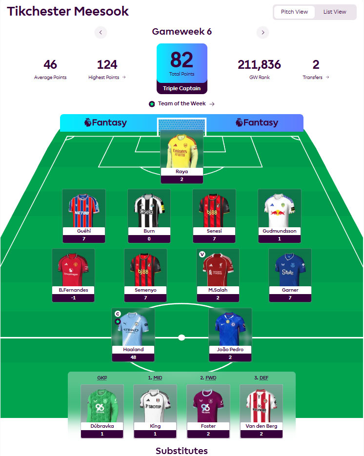 FPL (Fantasy Premier League) สรุป GW6 กัปตันฮาแลนด์กดไปคนเดียวจุกๆ 48 คะแนน