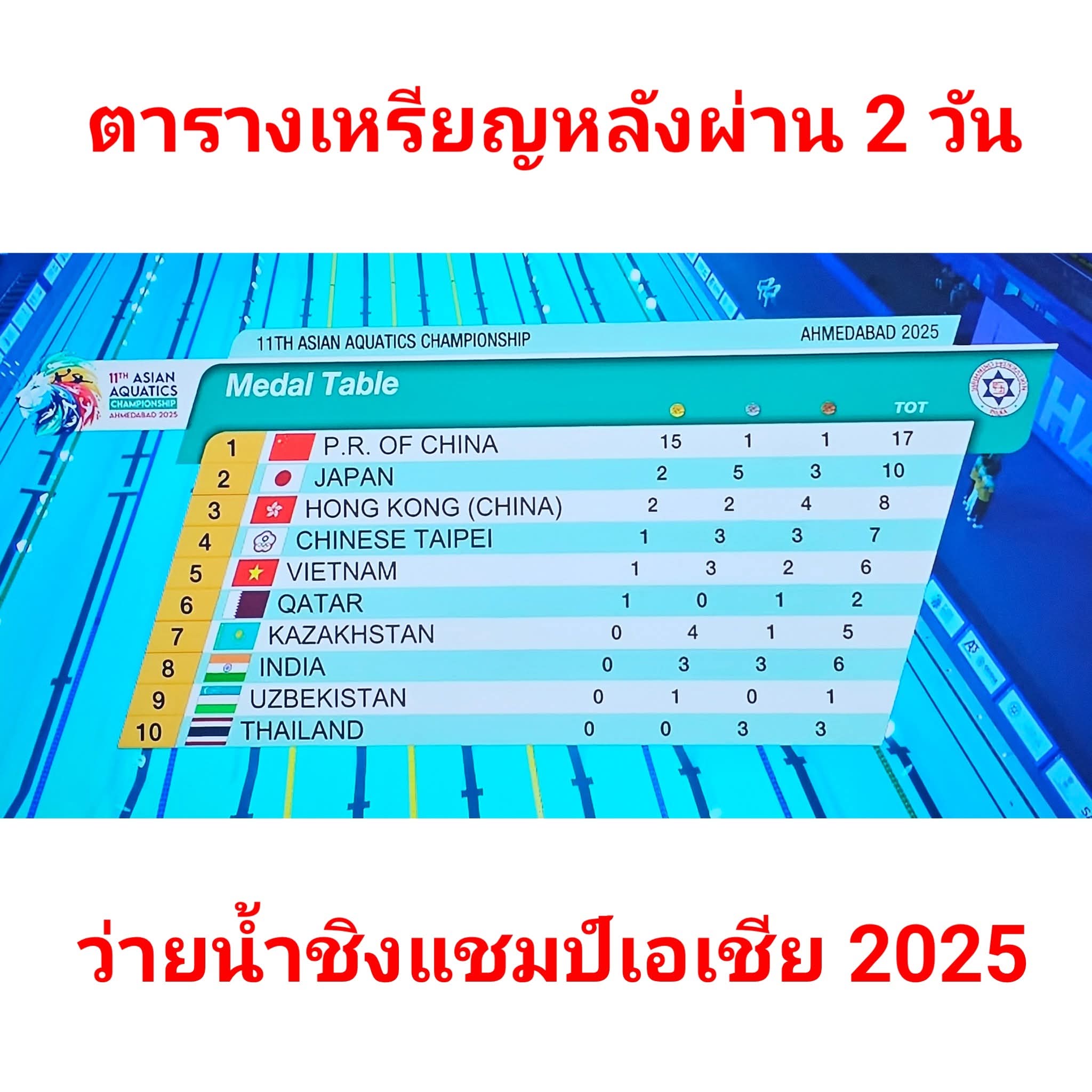 สรุปเหรียญว่ายน้ำชิงแชมป์เอเชีย ผ่านไปสองวัน