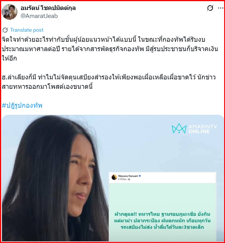ปีๆหนึ่งงบที่กระทรวงกลาโหมได้ไป มหาศาล แต่ปล่อยให้ทหารชั้นผู้น้อย กินมาม่า กินน้ำสามขวดเล็ก