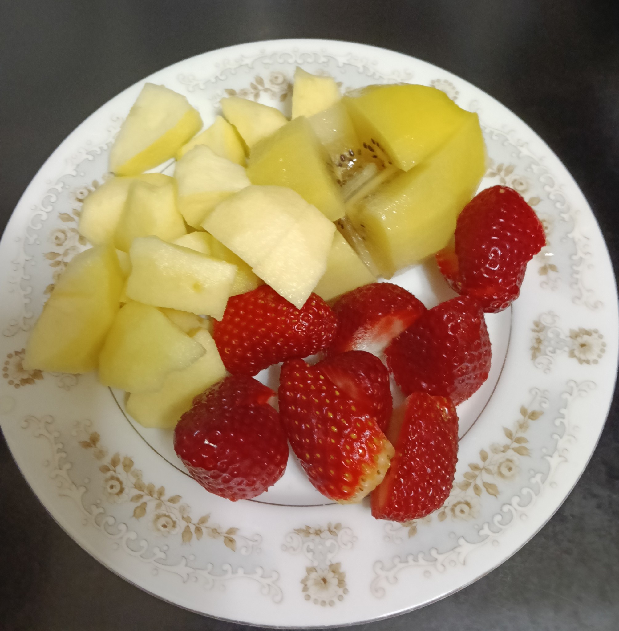 เตรียมผลไม้ ล้างสะอาด ปอกเปลือกหั่นเป็นชิ้นๆ เตรียมไว้ค่ะ